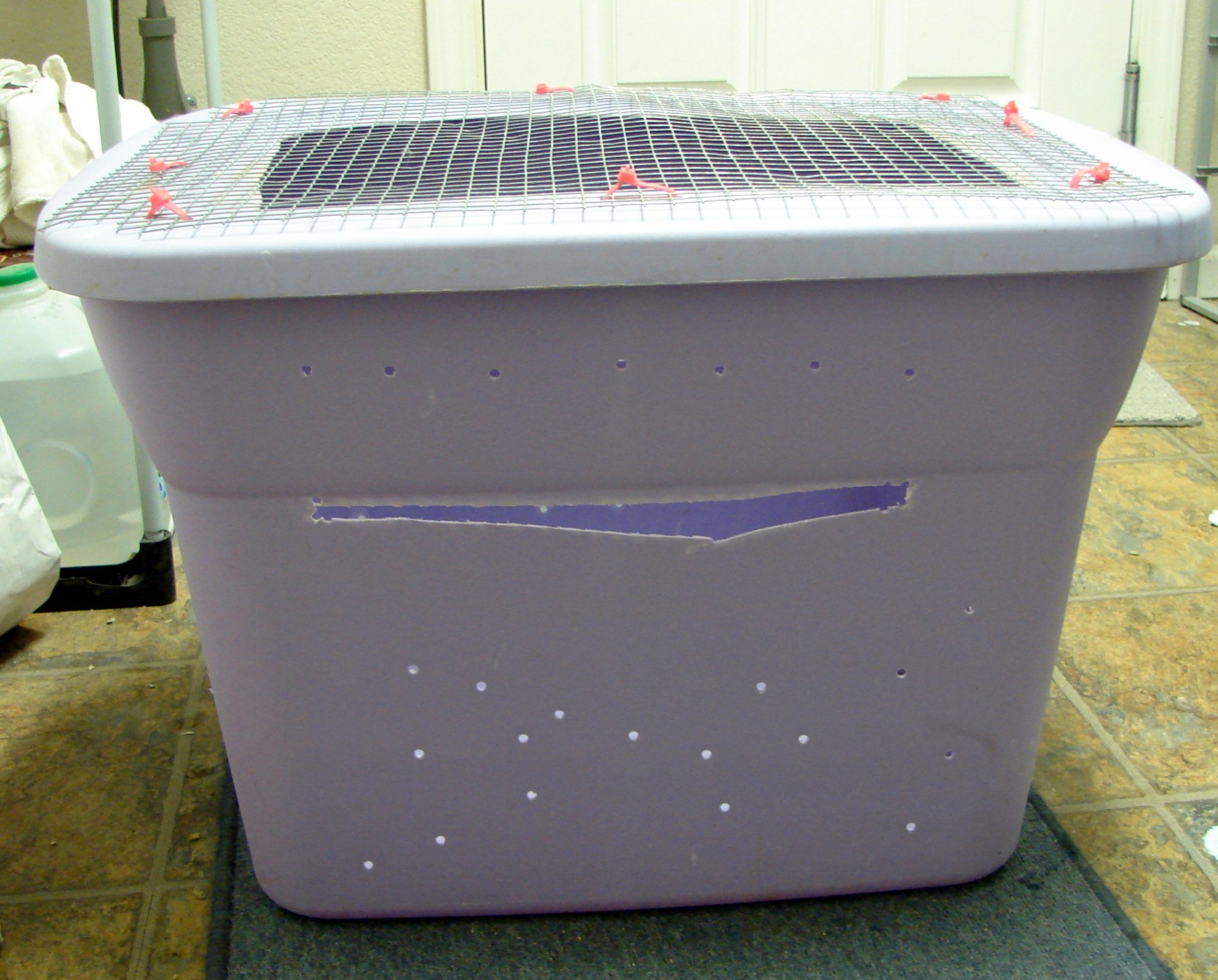 Last time I tried brooding chicks in a tub things did not go well... But I had forty in the BIGGEST tub I could find. I used a big piece of hardware cloth with a one by one frame..... Pleanty of ventialation right? Not when the silly buggers kicked shavings up into the waterer and it ALL Wicked out and into the bottom of the tub and in the shavings....