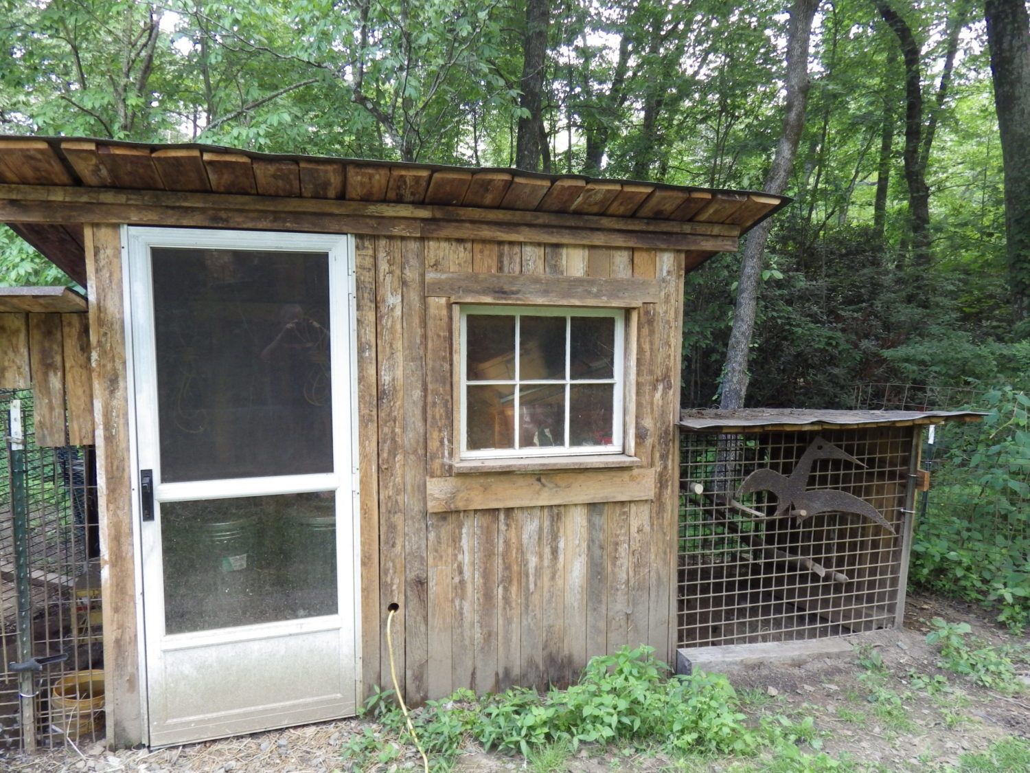 Gravity fed Feeder from a water pressure tank. We wanted to offer free access feed but didn't want to have to check them more than one or two times a day. We had changed out our whole house water system and had this tank left over.