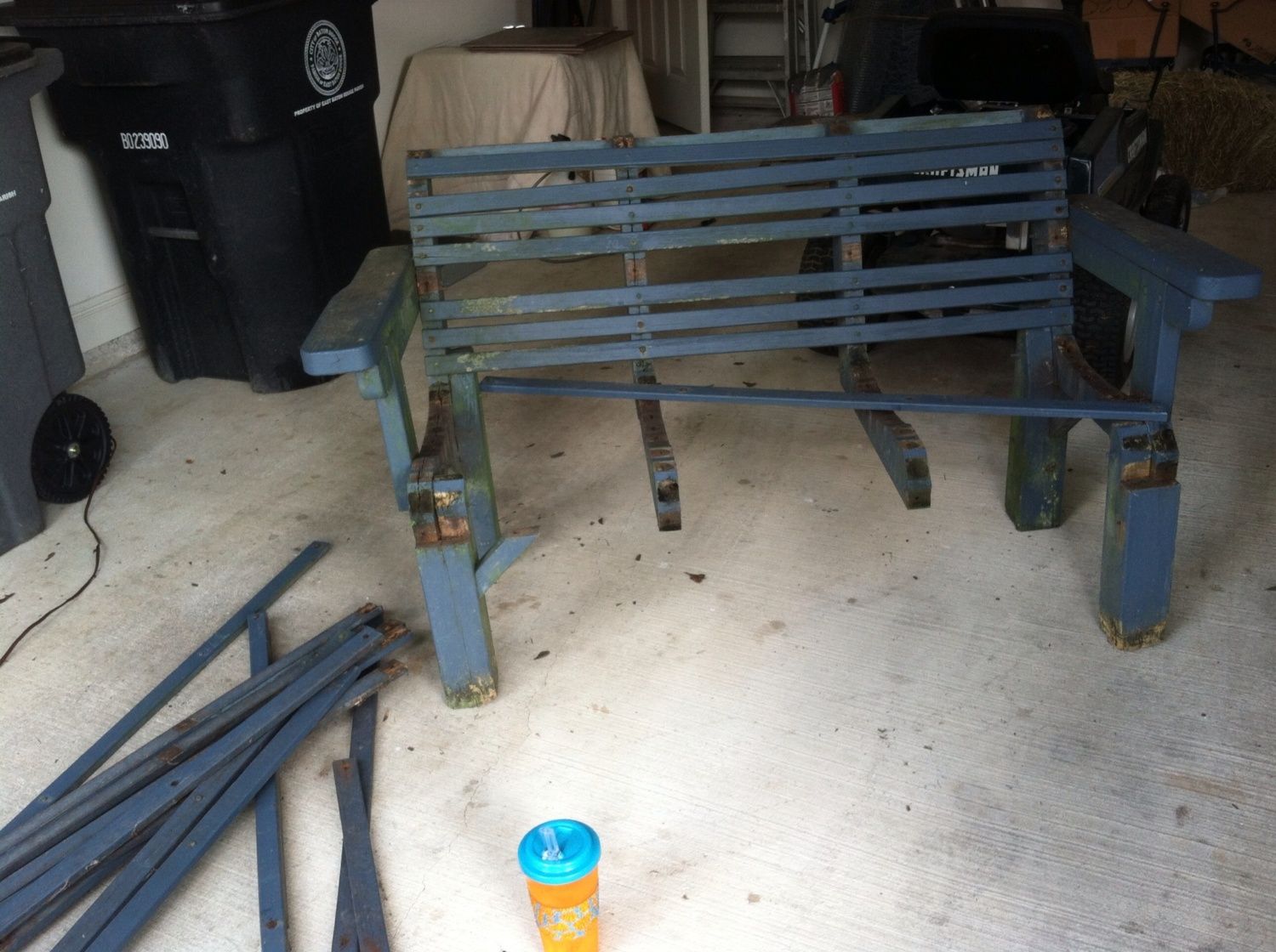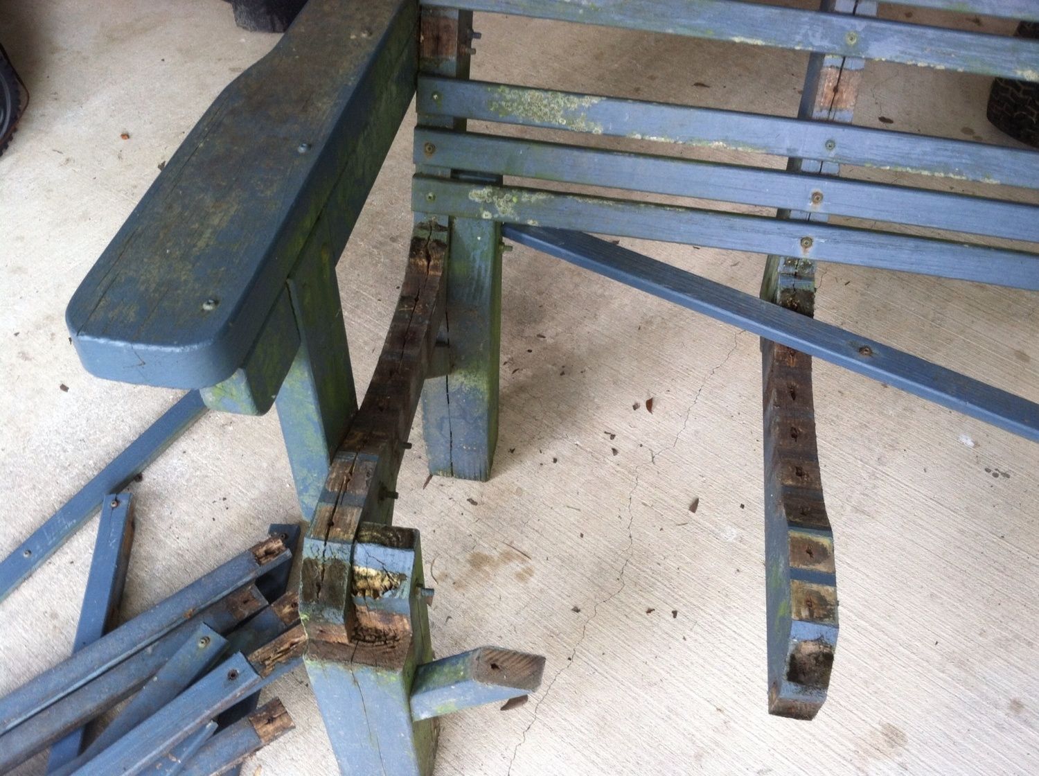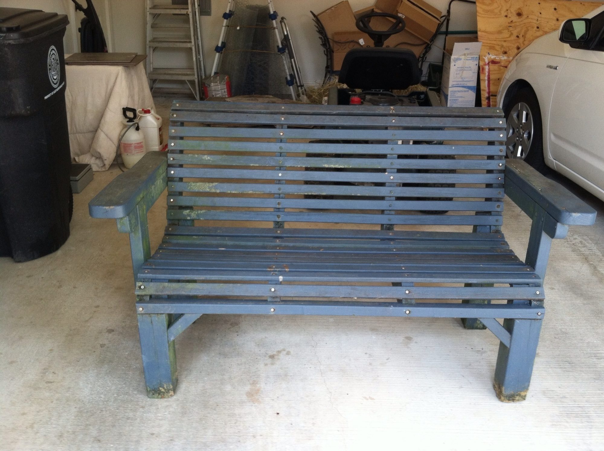This is not an invention, but it required some work. I found a bench on the side of the road for garbage. I picked it up and put it back together today. After I get the mildew off, I will paint it for my chicken yard. It will be my chicken watching bench. It is very heavy and sturdy.