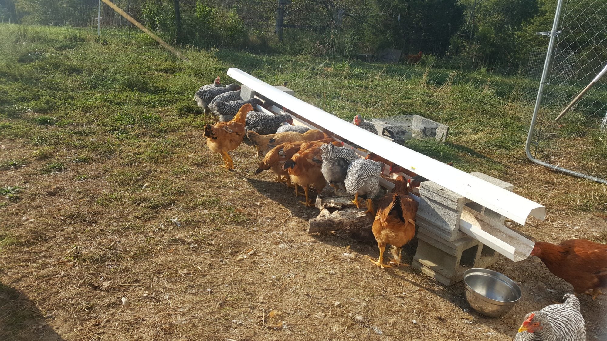 So the logical thing is a trough feeder ... but how to do it cheaper than buying a brand new trough feeder? Vinyl gutters!