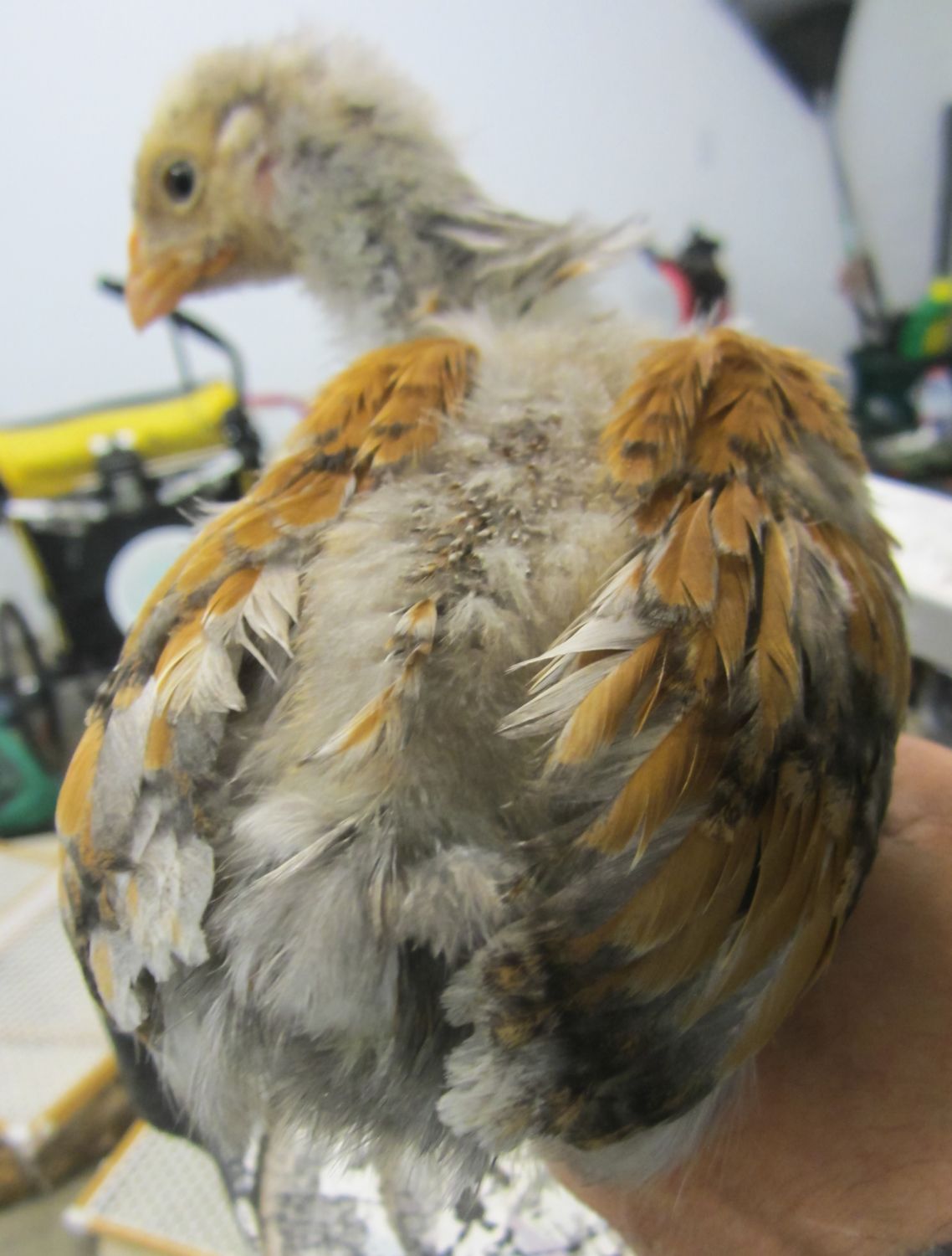 i recently got 2 blue laced red Wyandotte chicks i think are now about 2 weeks old. i thought they were the same age but i now see that one is significantly larger. The larger chick also has much more feathering the other chick only has started feathering around it's wings. does this mean the smaller chick is probably a hen?