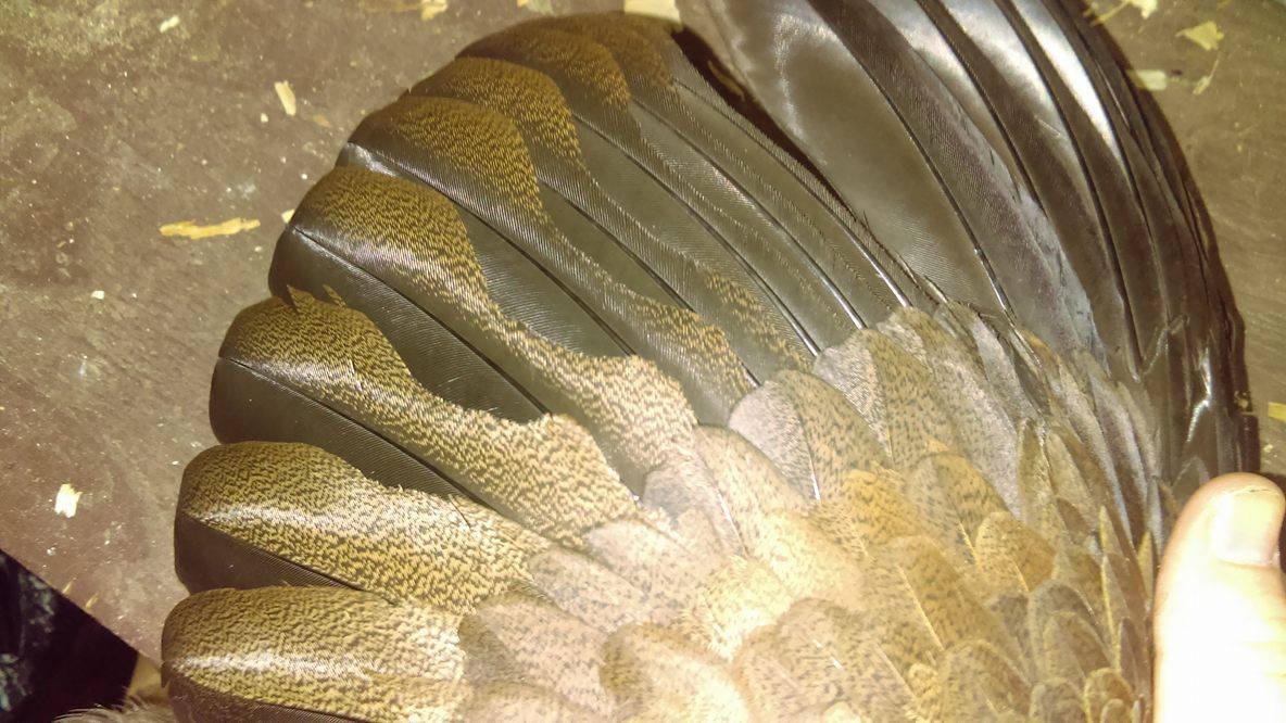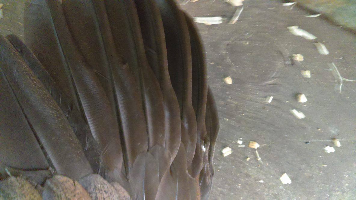 the small bit of damage to the primaries (primary coverts? not sure, the smaller ones)