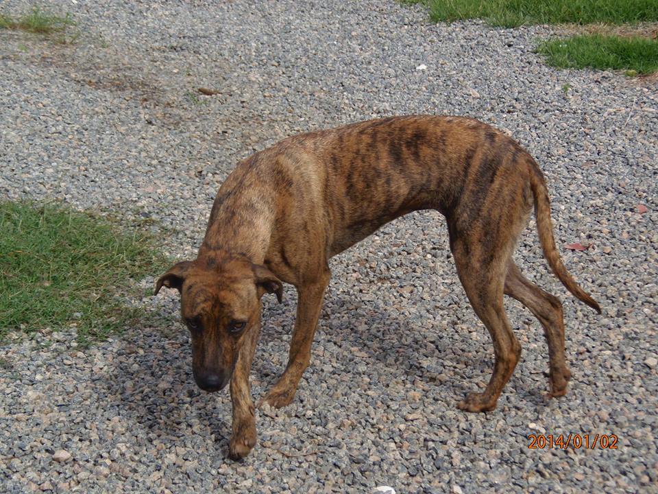 And here´s the latest arrival. We´ve had her a couple of months now. Took me a month to catch her, she´d been run over twice, apparently, after being abandoned. She´s very sweet and we´re treating her for Yeast infection. She´s improving, though, putting on weight. She was all bones when I got her home.