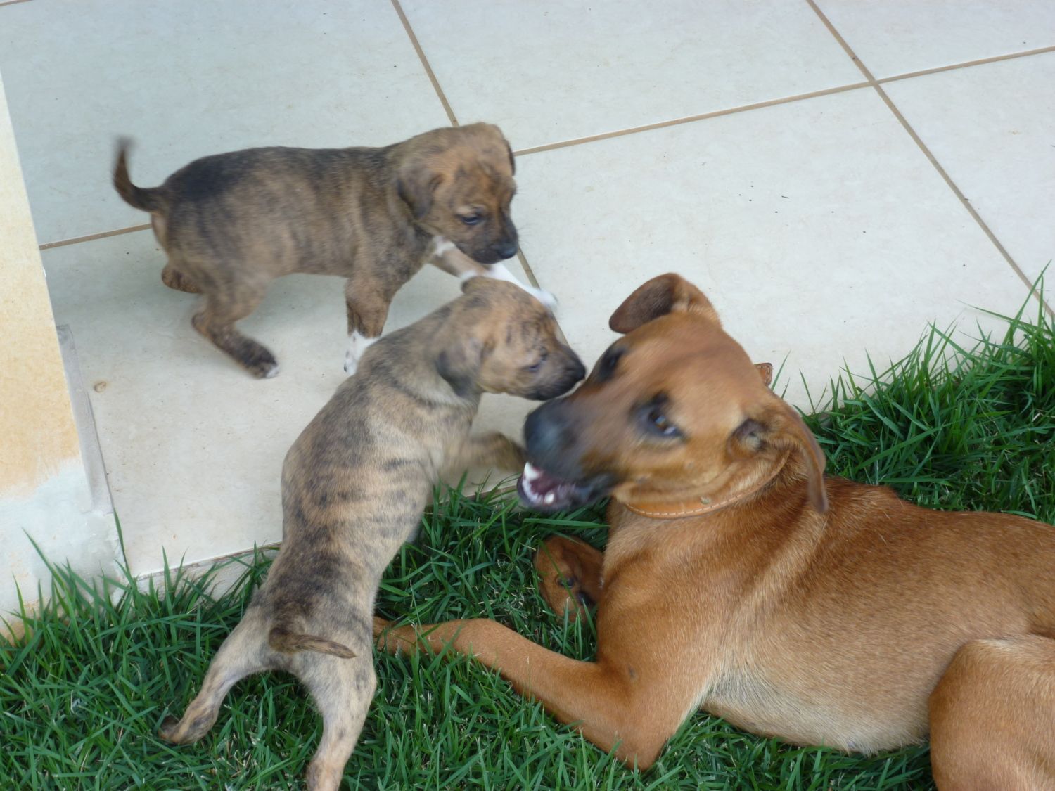 Here they are soon after we brought them home, playing with another we´d picked up about 6 months previously, so still just a pup herself.