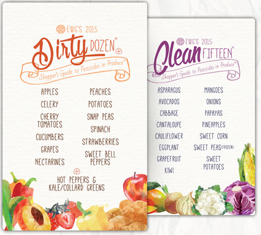 The dirty dozen are the ones you want to buy organic. The clean 15 are the ones that are ok to buy regular.
