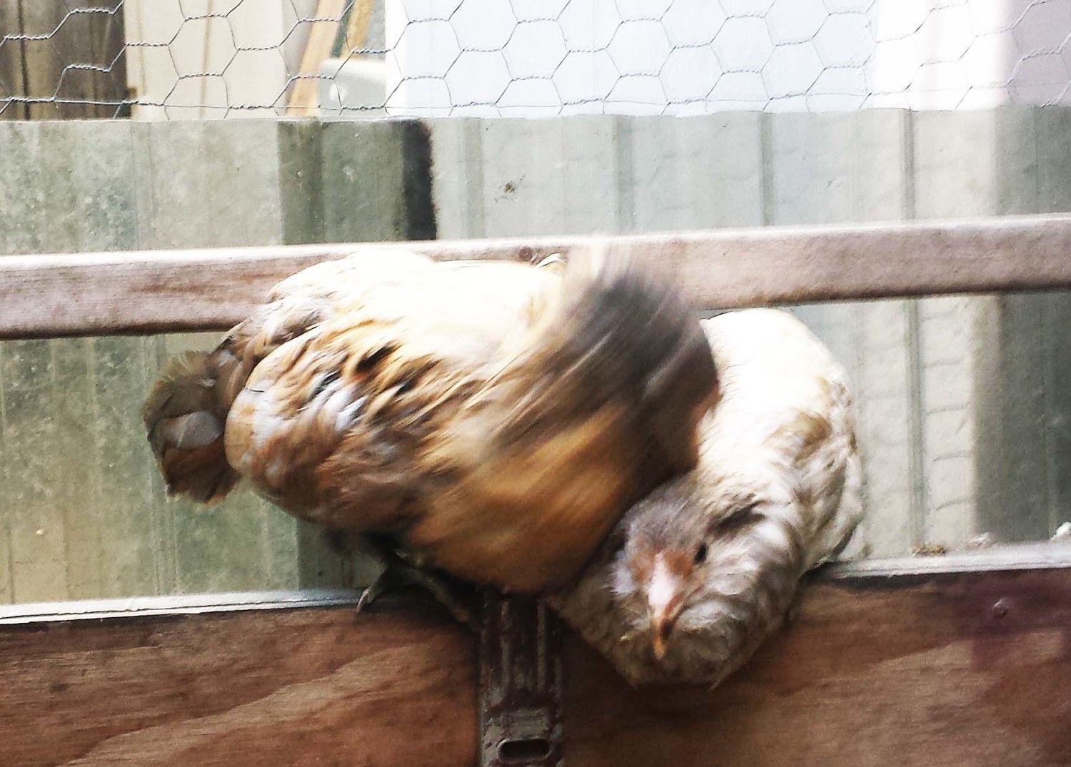 In the morning the Am is at one end of the roost and the SS is still in the same spot near the run wall on the other end of the roost. She squawks a little when the am nudges her. But does not become feisty or upset. She just holds her place on the roost. Can someone interpret what they are doing? I would appreciate it!