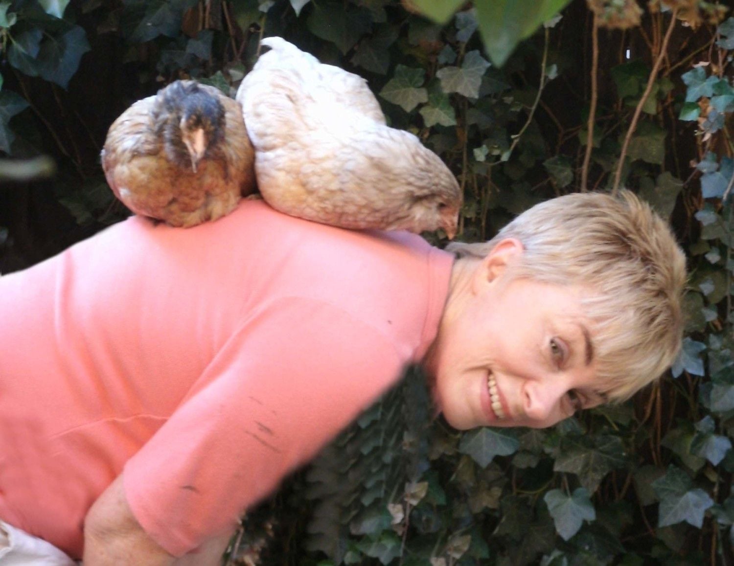 I adopted two Americauna's from a breeder in the Bay Area where I live. One sort of red and the other whitish. I call them Thelma and Louise...the redhead being Thelma.