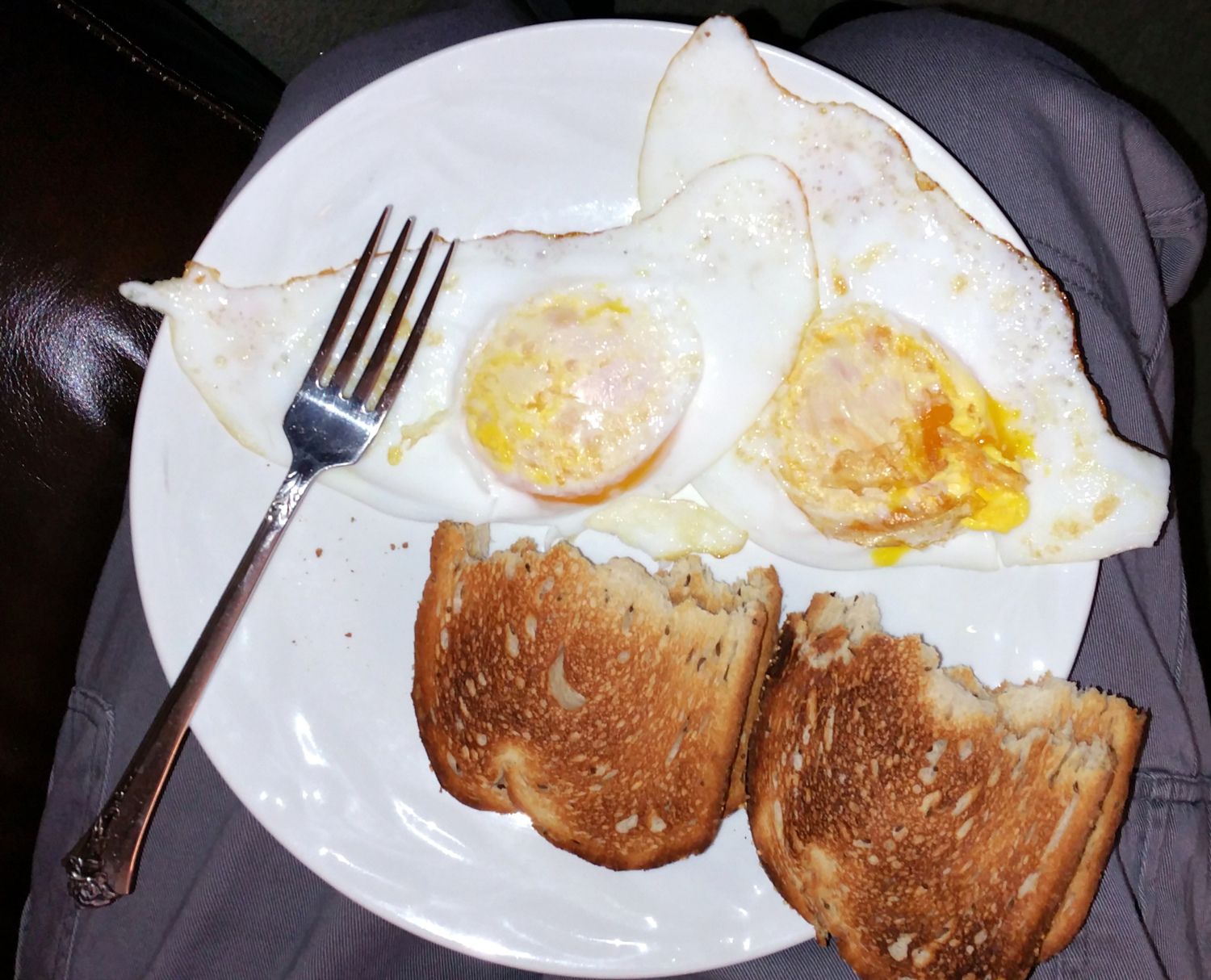 A couple Pekin eggs over easy with rye toast... (that is a full size dinner plate) mmmm.