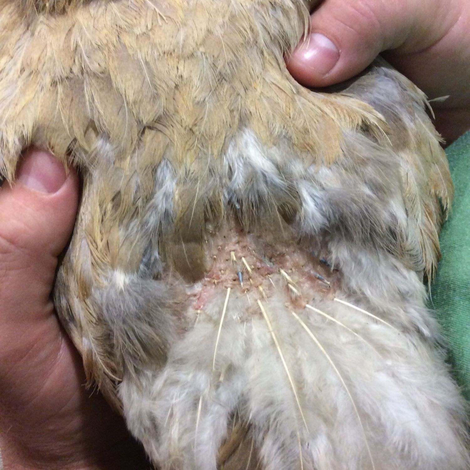 Quote: With Quill mites they strip the feather and just leave the shaft. She doesn't look like she has any mites of any kind. If this is at the base of the neck on the back, it is possible others are aggressive toward her and they are chasing and grabbing at her feathers and pulling them out.