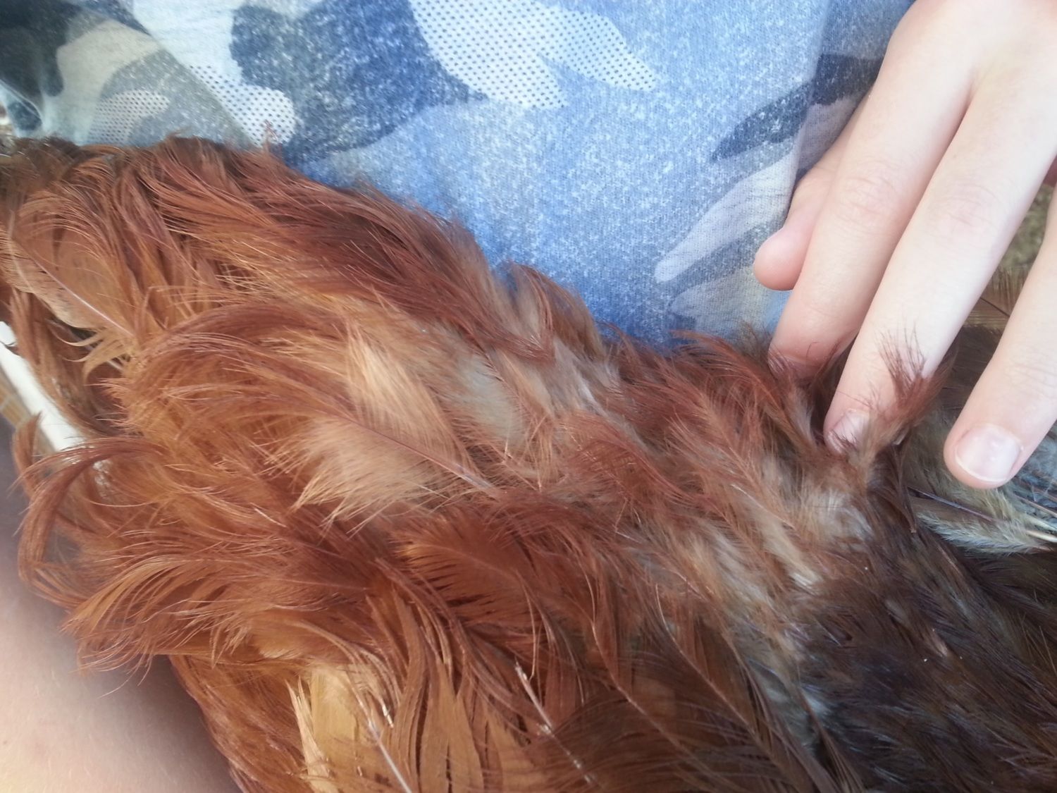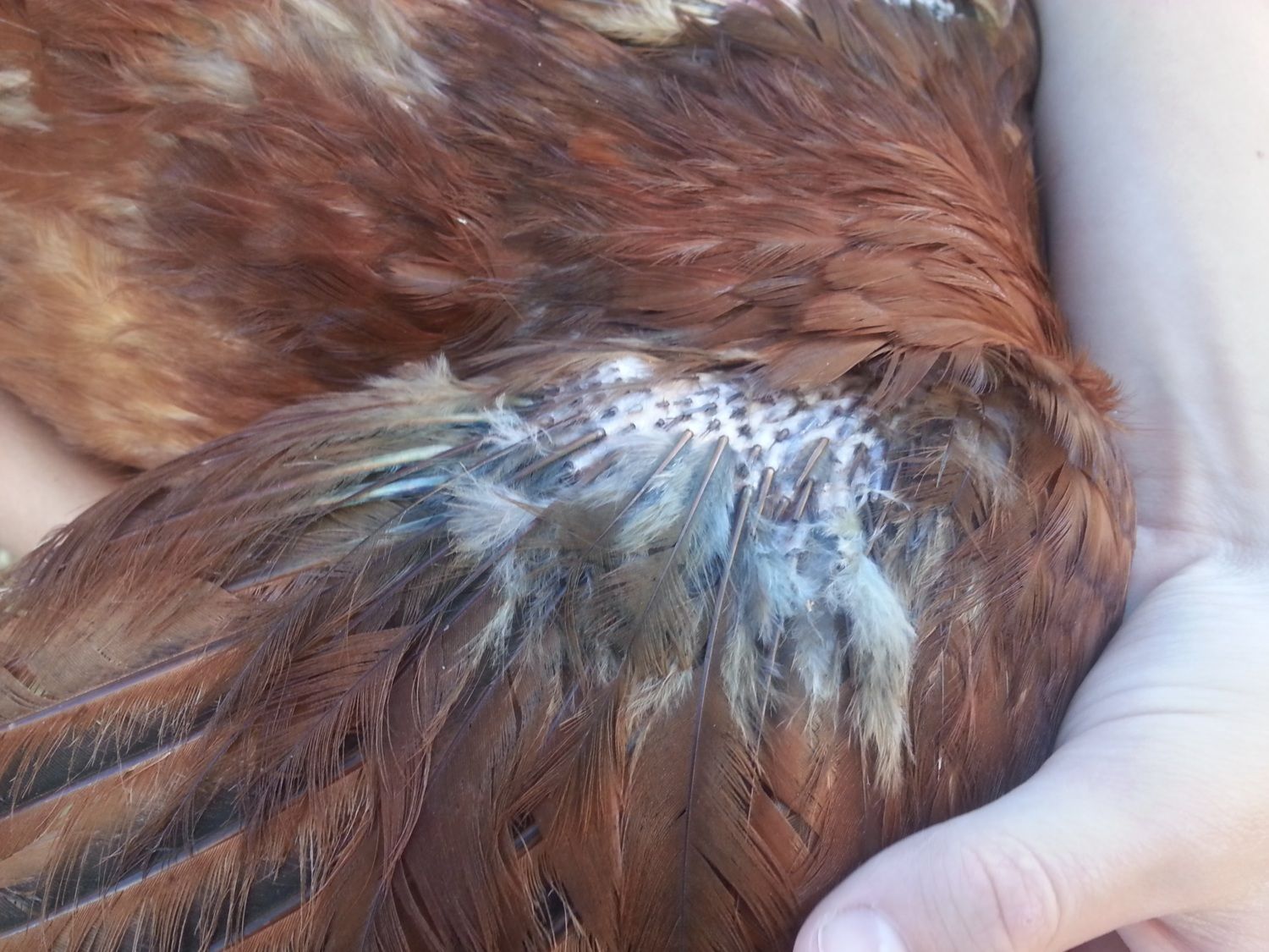 Recently she has started to lose her feathers on both sides of her wings, her chest, and her saddle area. She still acts fine. She still eats, drinks, and lays well. she is in with 7 other hens in quite a big run with daily free range time as well.