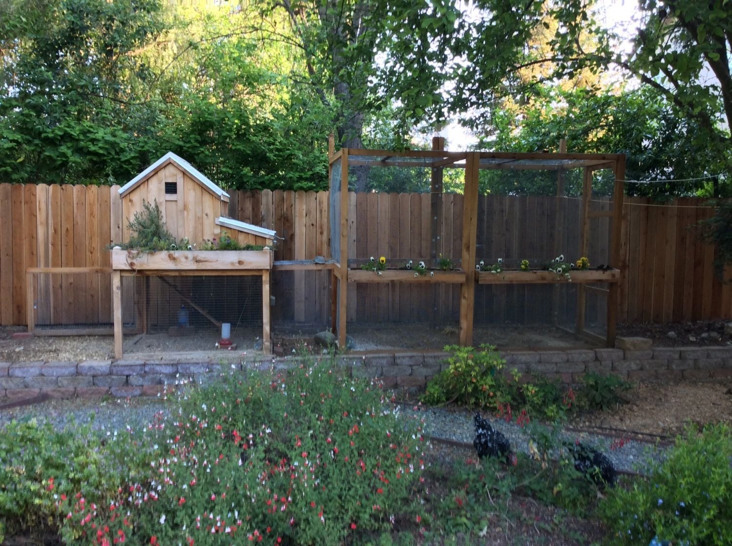 It looks really nice, as you say, it's just the thing for a suburban backyard. Your row of petunias across the front of the run looks nice, too.