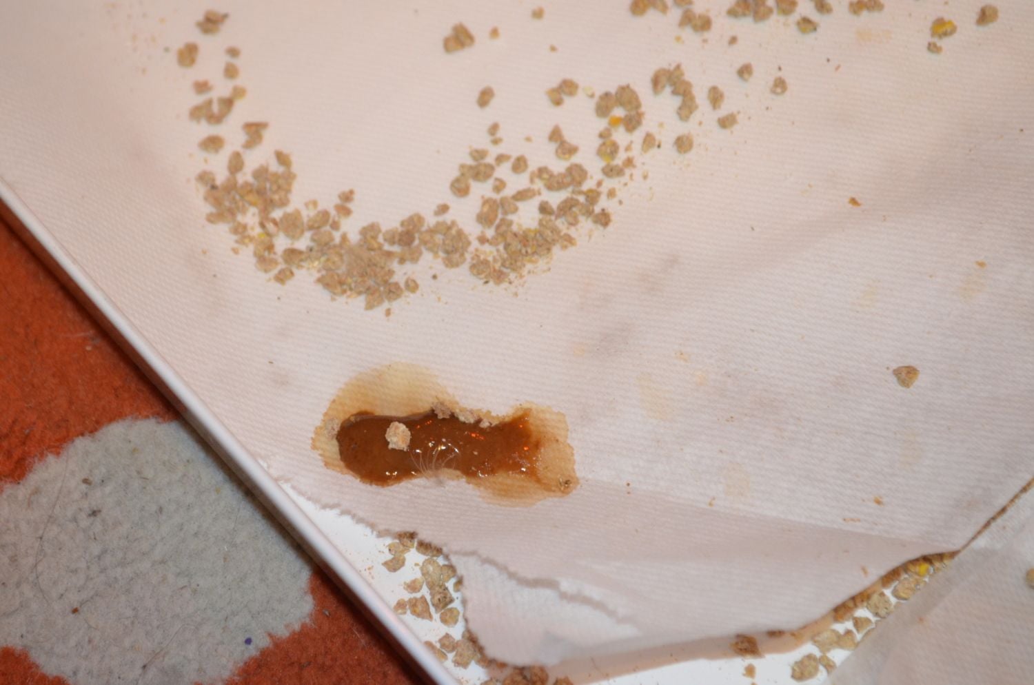 Does even small specks of blood mean cocci? Can my girl that is walking like she is drunk be fighting cocci? I haven't seen any specks of blood from her, but a couple others I have. They were treated with Sulmet Feb 10-15th, they seemed fine until the drunk walking started yesterday...I did notice the specks of blood 3 or so days ago but it is so small I wasn't sure I should worry. You guys are always such a huge help to me...should I treat them again, I really don't want to lose my drunk walker. I started the Poly-vi-sol last night but so far no big change. She is still trying to eat and drink but I don't know how much longer she will hang on. Her eyes have started to go slit-ish and I think she is getting weaker. I will add some poop pics of the specks of blood, this was this morning before their first change of the day.
