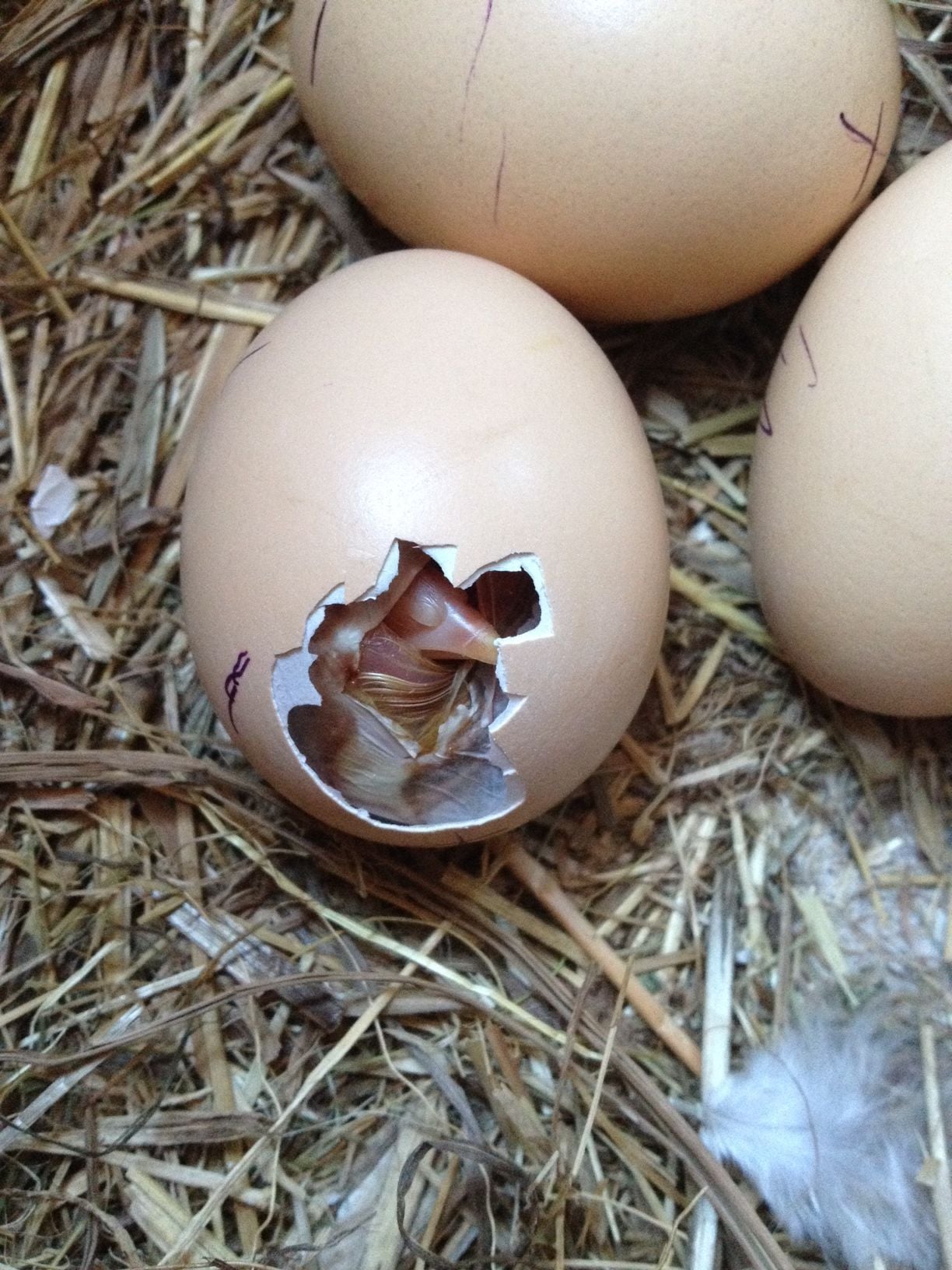 This chick has just zipped round the egg at the top and poked its head out this one was more than 12 hours from pip to zip.