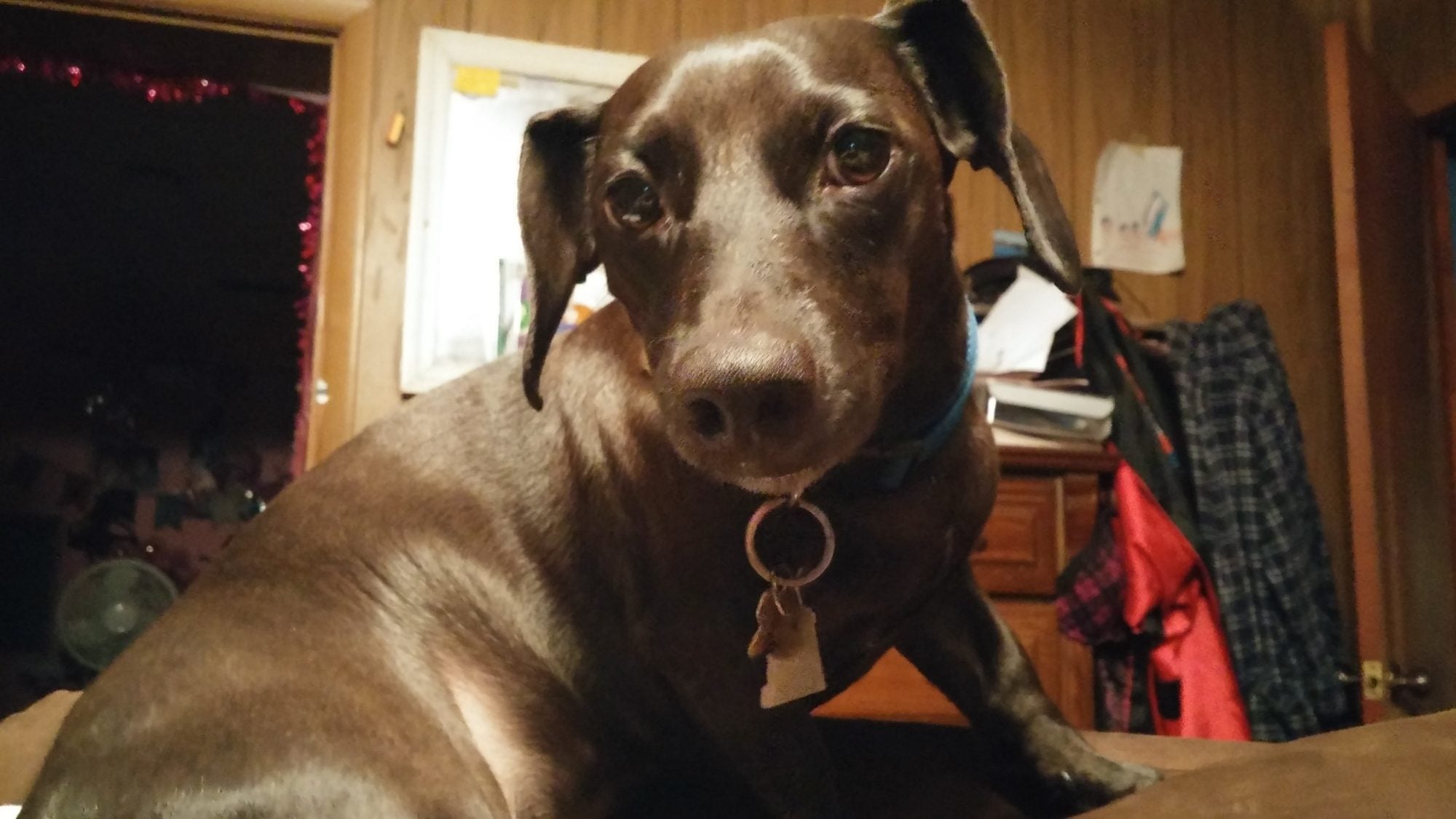 Onyx the Chiweenie gets along with our two hens