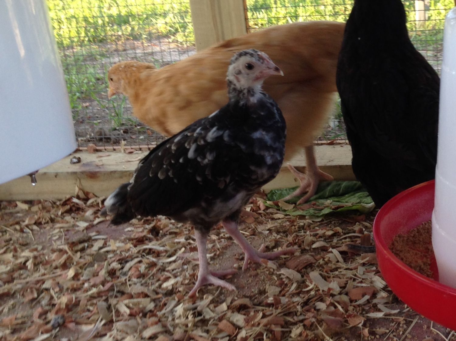 We are slowly finding out who is missing after a bear broke into the brooder coop. Sadly it got one of my two Doms. Here she is with one of the Wyandottes.
