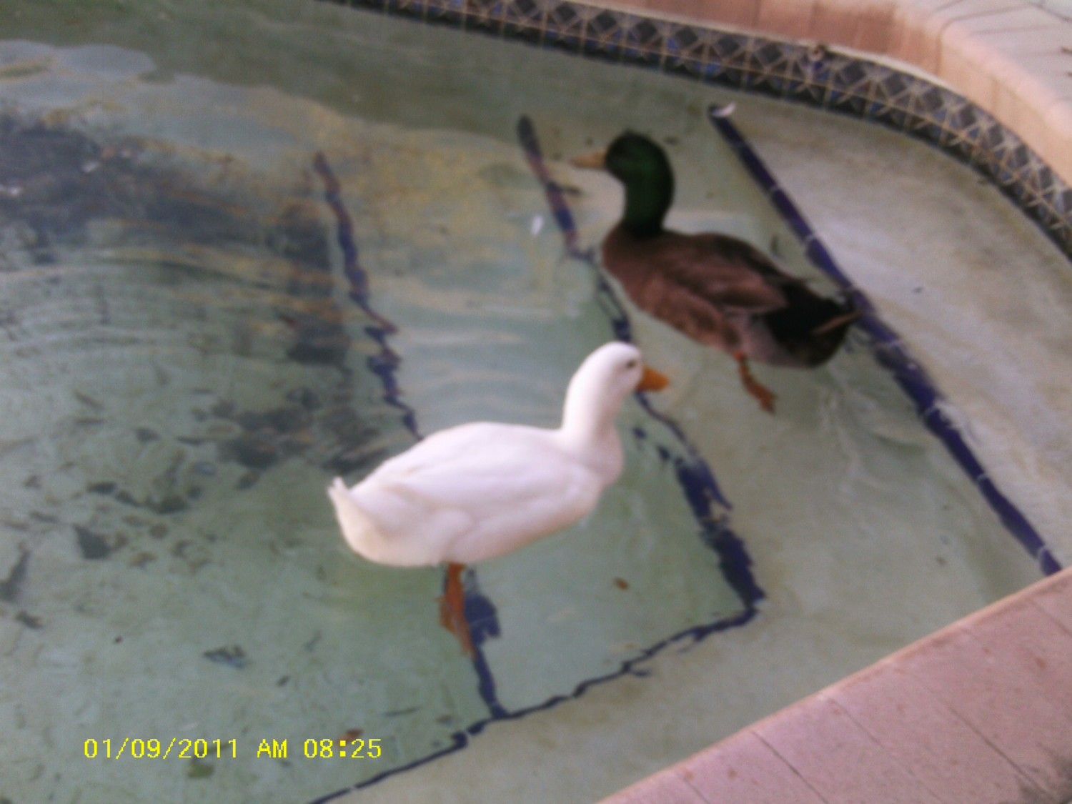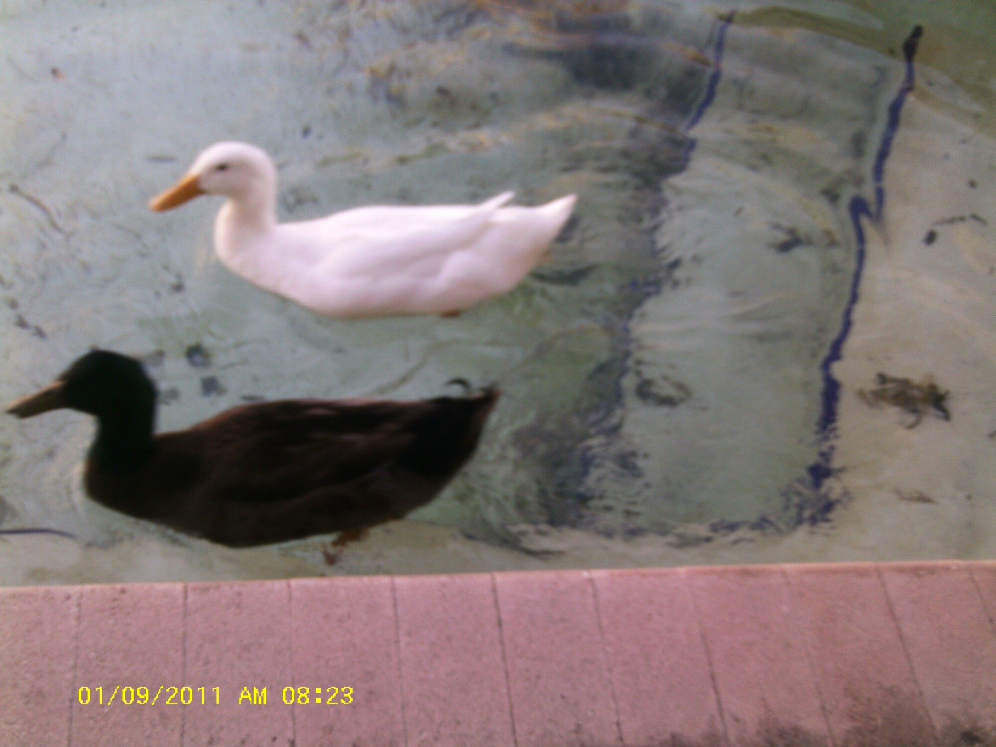 That sounds cute! If you can, post some videos of your ducks sharing the pool with you!It's our pool. It needs a good cleaning for summer. In the summer I have one of those crawler things and it takes care of any droppings and add a little more algae stop to it. They really seem to use it more on the cooler days than in the heat.. They jump in and out and forage thru the yard. They are not loose all day and night. They stay penned in the goat area when I'm at work and at night. Its really funny to watch them. They will dive to the bottom and swim across and pop up and stand tall and make a funny noise in water.![]()