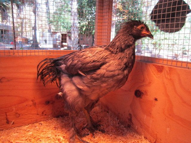 Today I went out to the grow-out pen to prepare it for some of the chicks ready to transition to outside. I noticed about 3 days ago the two bowls I use to feed the little guys were upside-down, which they often are as I keep the pen open for anyone when it's not being used for chicks. Well, I bent over to pick up the bowls and there was something underneath one! After recovering from the fright of my life, I picked up the bowl again and found a young chicken underneath! He was thin and weak, and soaking wet, probably from condensation. He had been under that bowl for probably 3 days. This is not a little chick - he filled the bowl!