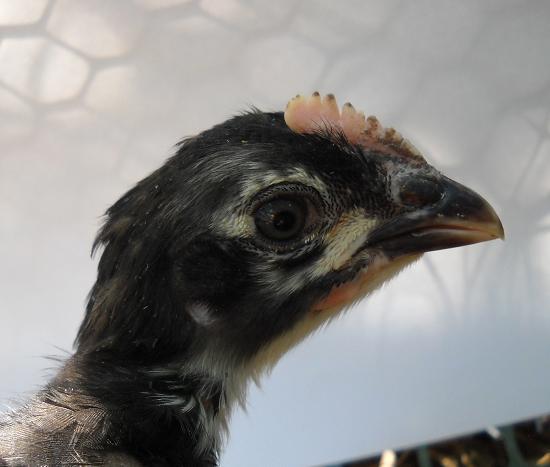 Sixth, Pink: Cockerel- I think. The only one I can't call for sure yet. Almost positive (like, 95% sure) he's just a late blooming cockerel, but not quite ready to give up the glimmer of hope on having one more pullet. Still very little copper and a pretty small comb without much color, but is getting in bigger are brighter wattles than the pullets.