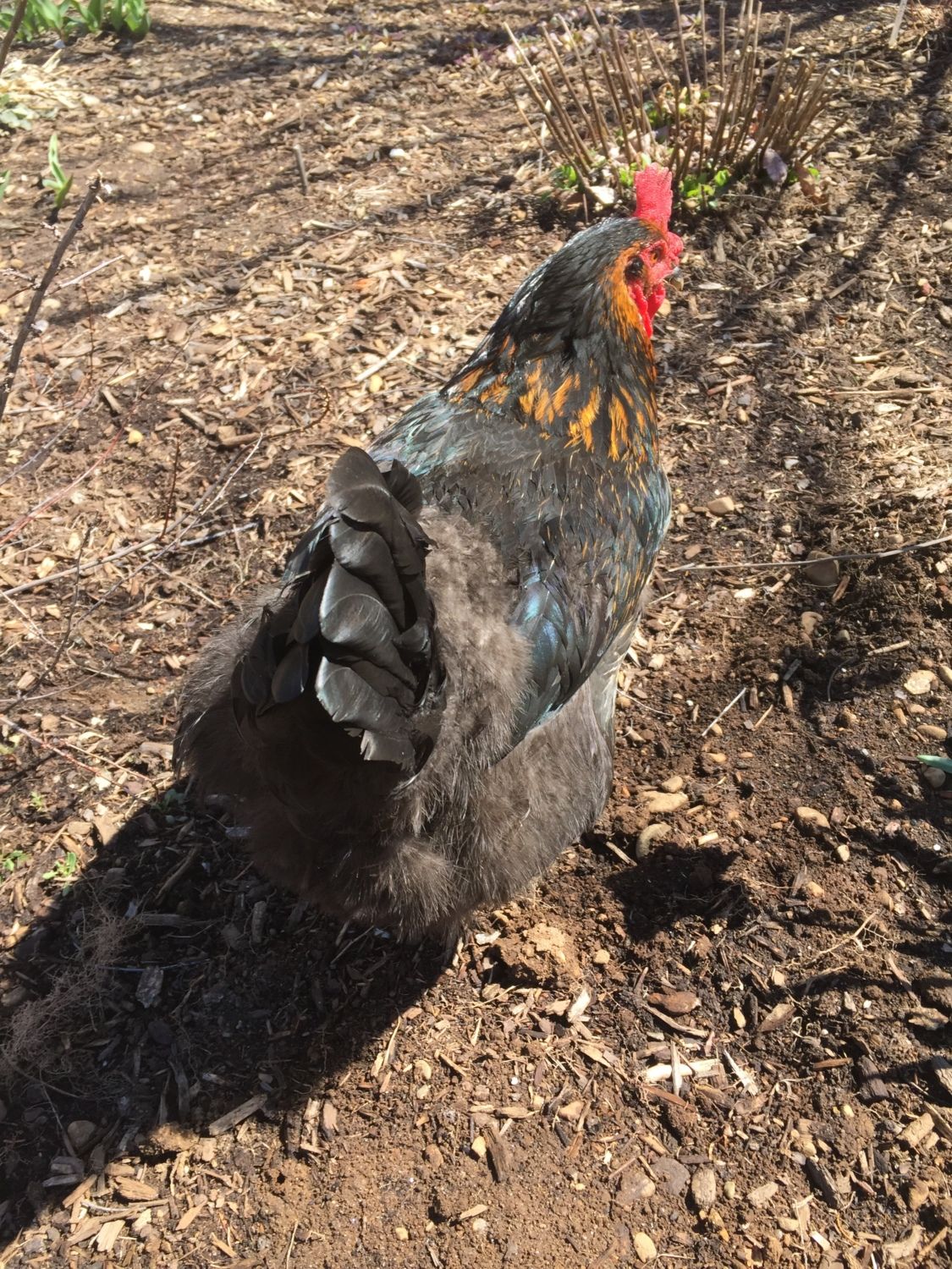 It was a red heat lamp. Record low temps with the wind. Coop temps were below 0. There was some light escaping from the water heater area but it was quite dark. It seems worse now than in the winter (no lights now). Before it was just a few on the back but now it is also on her chest/front. So I am wondering if it is a food/worm issue that is contributing to it. Ok so DE is a no go. I can get the other stuff that you mention above. Her weight seems fine. There are feather problems all over her. I just checked. Even her wings have the tips broken off. Almost ready for a vet visit. Seriously no evidence of lice or mites. Vent area is perfect and quite fluffy normal.