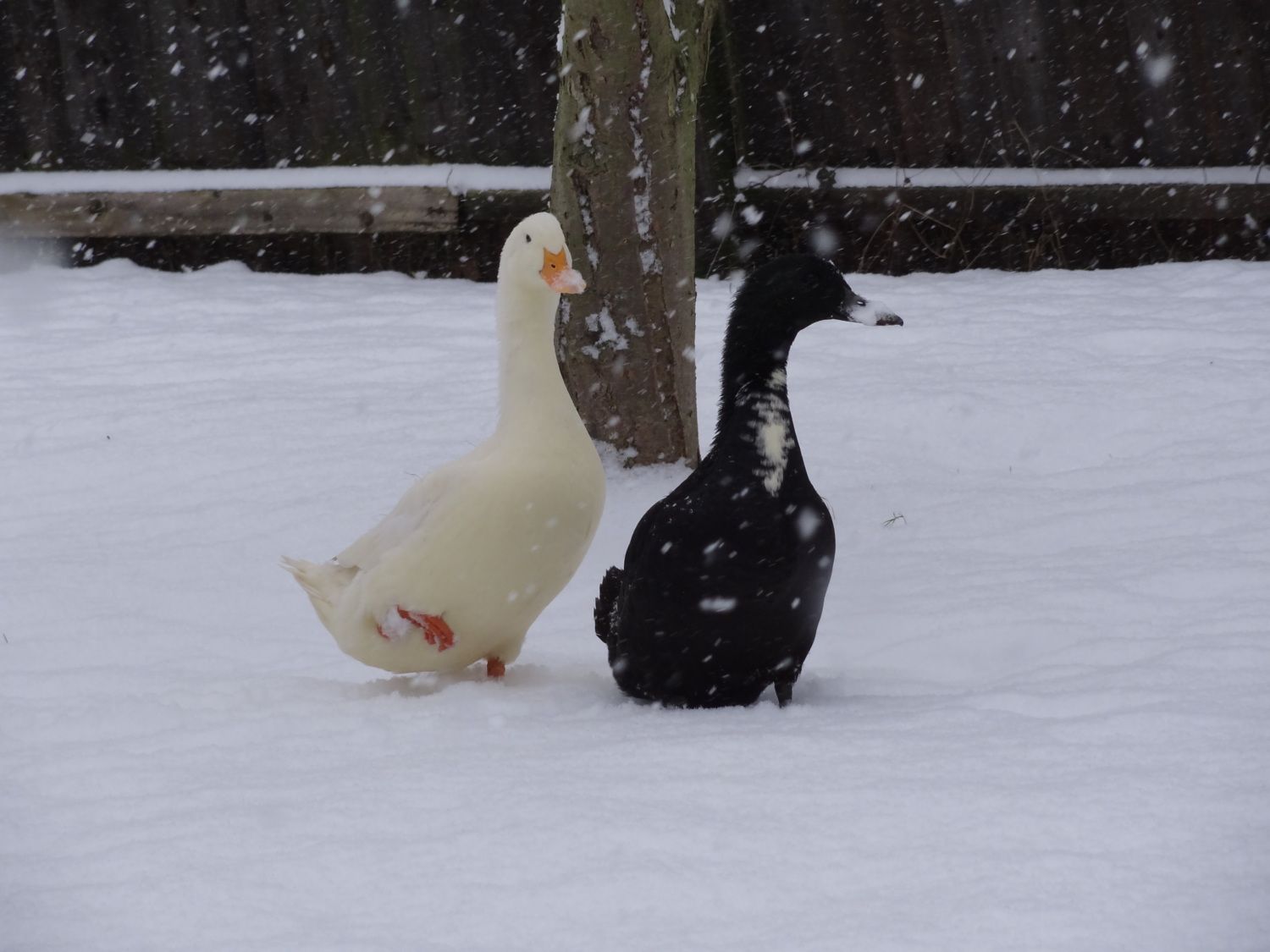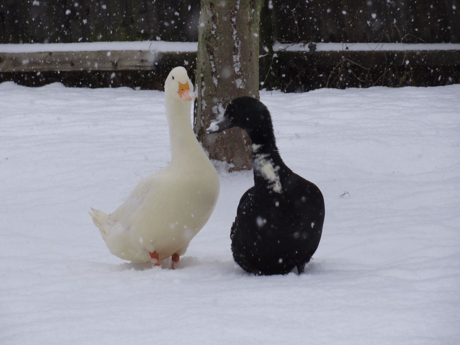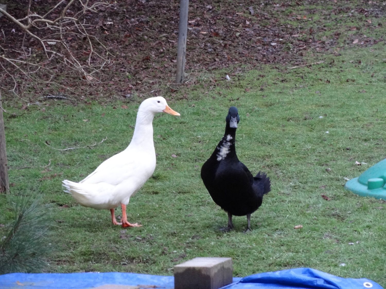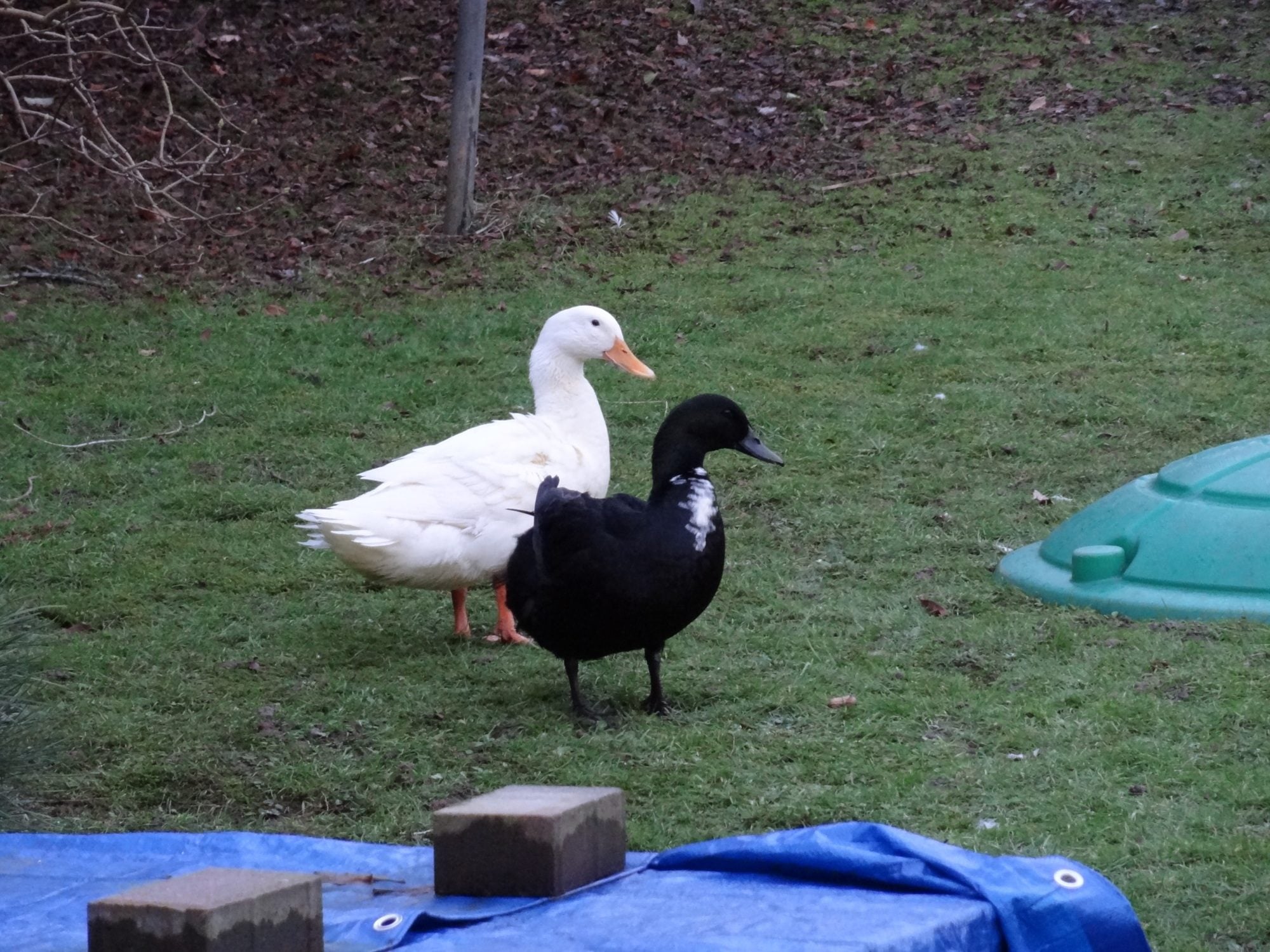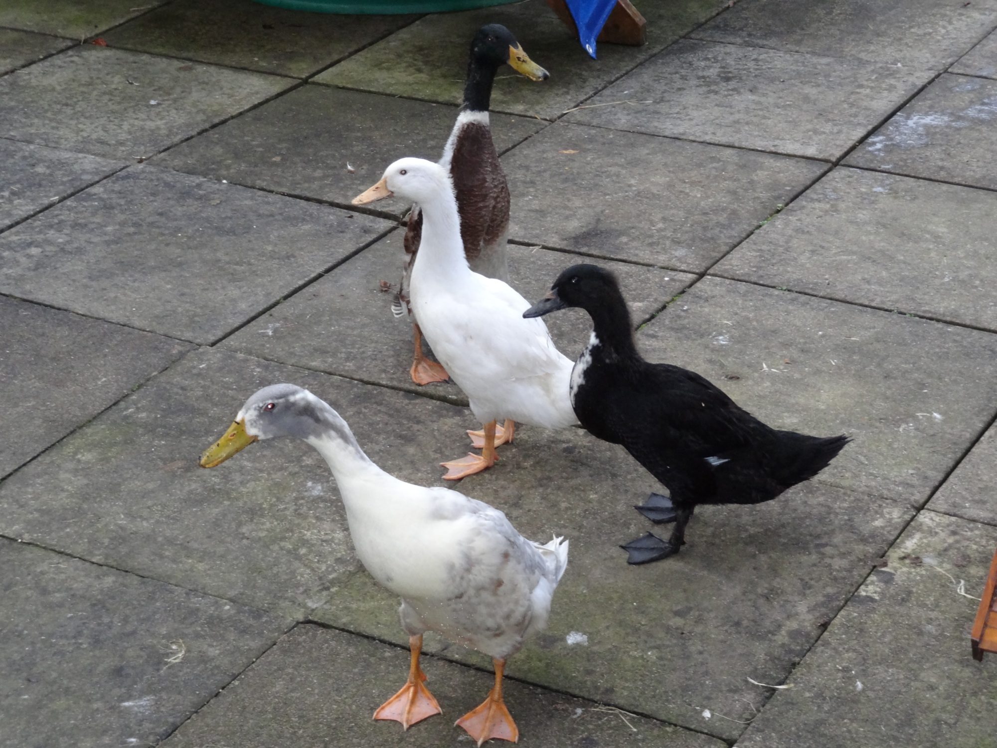 We kept the younger ducklings in a pen until they were almost fully grown. This gave the older ducks time to get used to them. Once they were let out together there was a bit of “pecking order” antics but they eventually got on like a house on fire. We then found someone to take one of the drakes, but they quite rightly pointed out that as the drakes grew up together they may be better kept together, so we let them both go. They are both doing well and we now have a place to board the ducks when we go on Holiday.