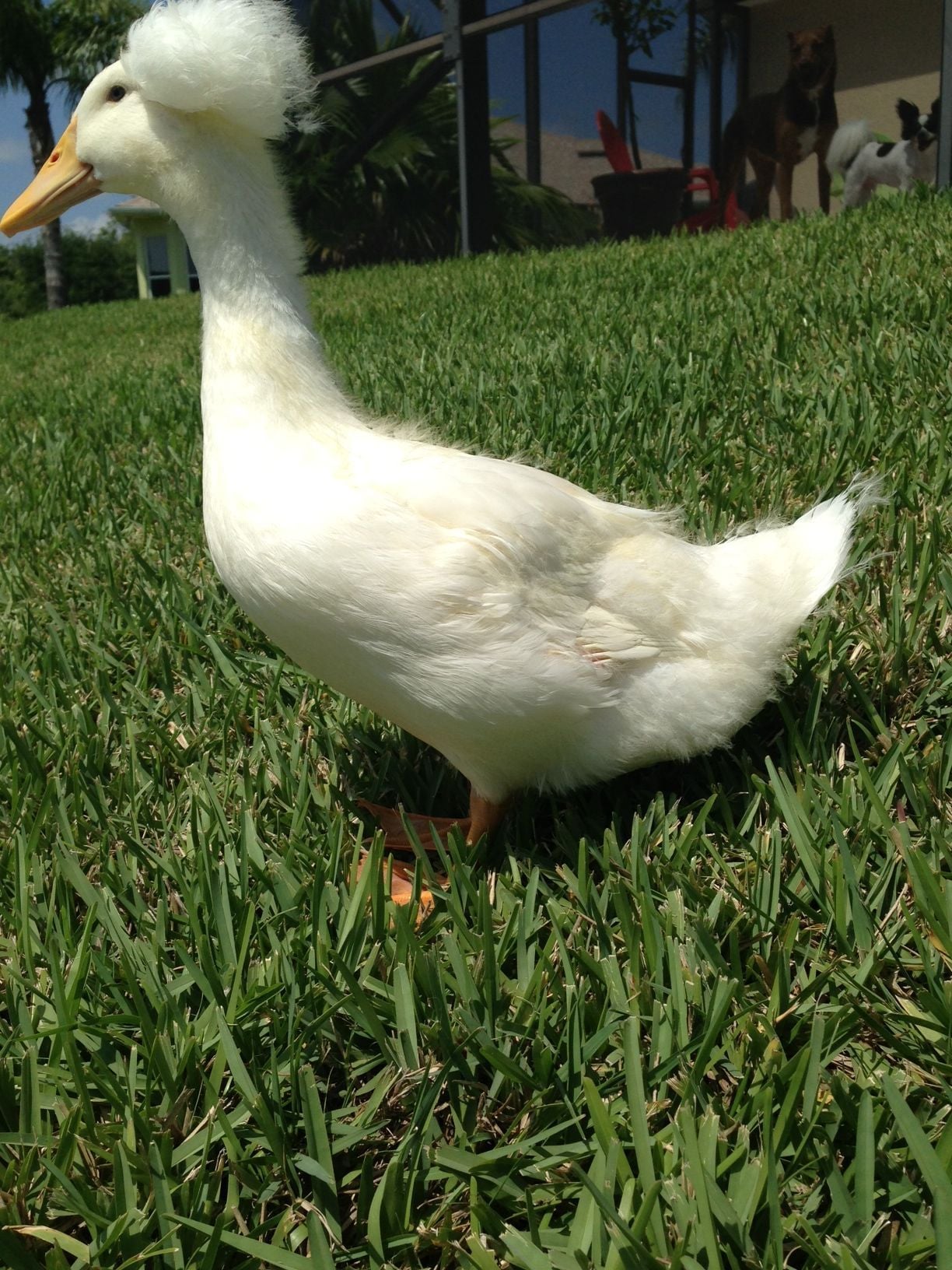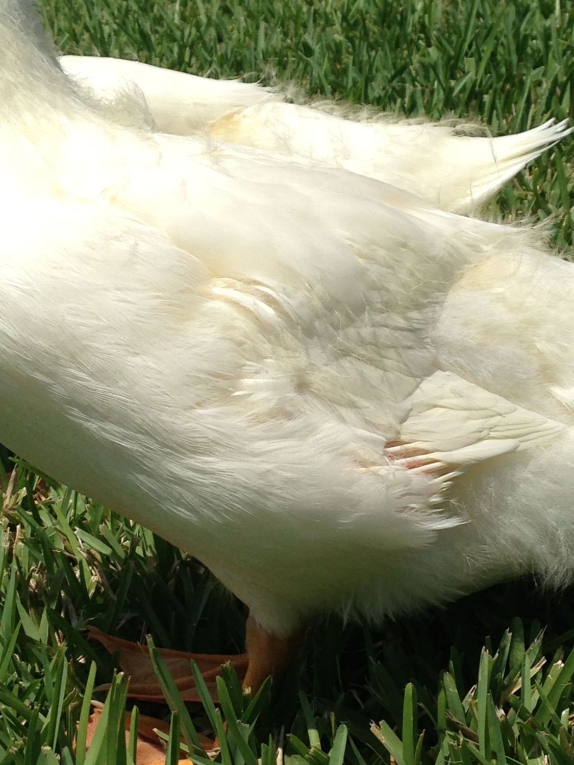 Hi y'all, I've got another question regarding my lil pekins. They are all 7 weeks old this week and seem to be doing quite well. The 2 normal ones (Dewey and Louise) are almost feathered and almost fully white already. My concern is that Dewey's wings don't look like Louise's. I've been searching all over the forum and I THINK its droopy wing due to the feathers coming in, but I needed some expert opinions. Louise wings sit up fine, she tucks them in to the point I don't even see her new wingtip feathers growing in, but Dewey's are hanging down somewhat and he is not tucking them. My question is: based on these pictures, is he normal? Is this normal duck growth? He isn't having to constantly tuck them, they appear to sit fine, they just aren't tucked like the others. This is how he stands all the time, with them showing like this. I think when he's swimming he may tuck them up higher.
