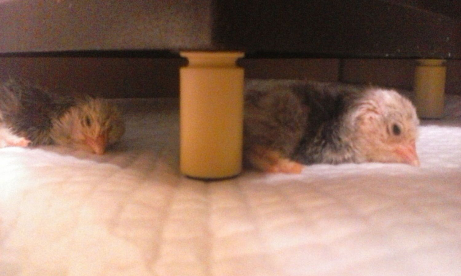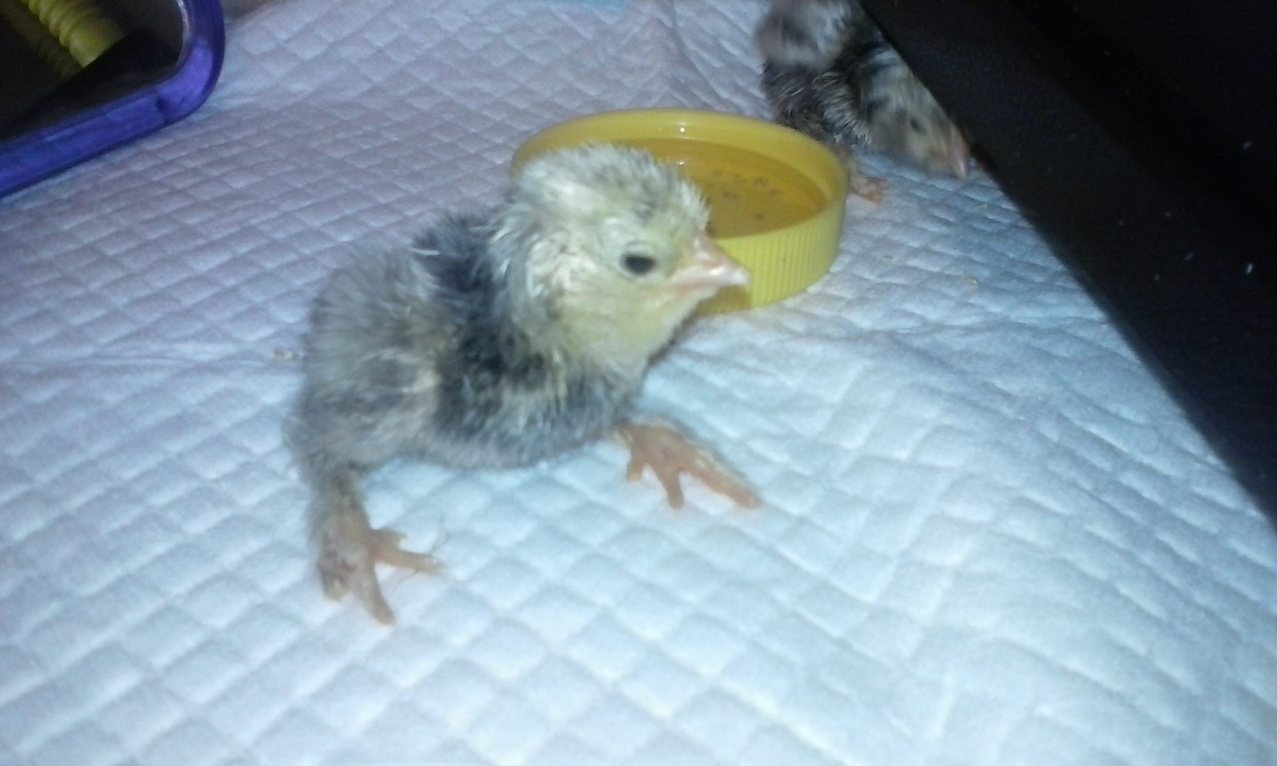 The chick on the right appears to have spraddle leg. This can usually be corrected. Let me give you a link to check out: http://www.the-chicken-chick.com/2012/02/spraddle-leg-in-baby-chicks-what-is-it.html