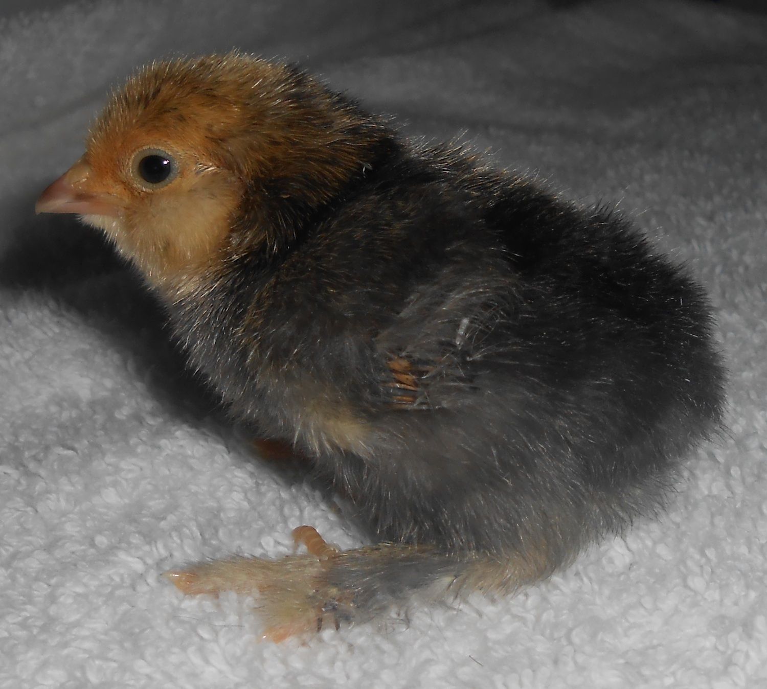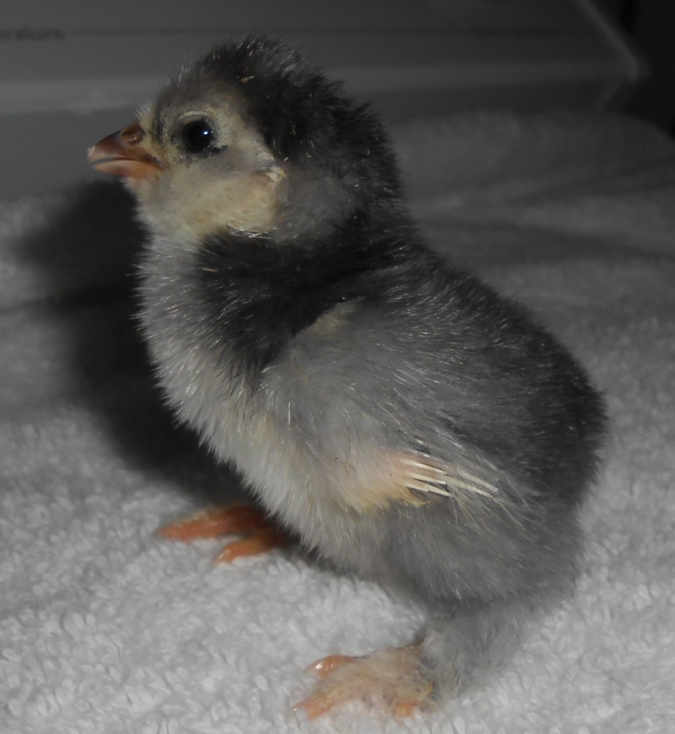 Just found a picture of my mystery chick on the old English game thread. It was a porcelain color with blue/gray earlobe s, beak, and legs!!!!! So the mystery has been solved. Well at least good enough for me lol!