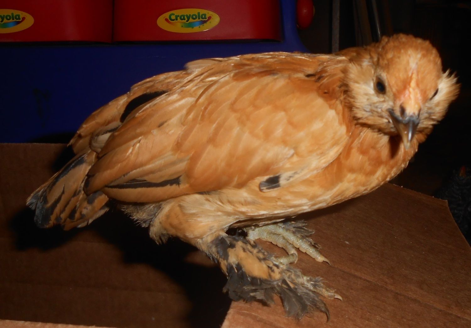 Question, does any one else have an adult D'Uccle that still peeps like a chick? I have a hen that hatched last summer and she still sounds like a baby!