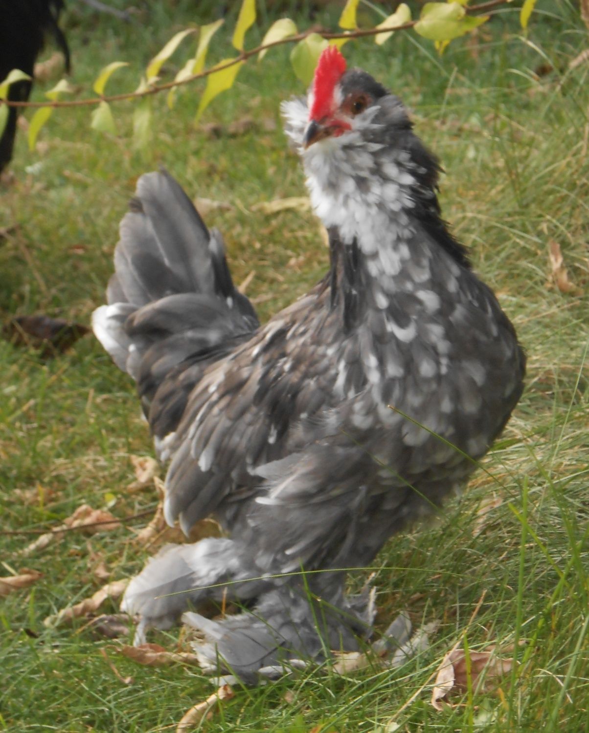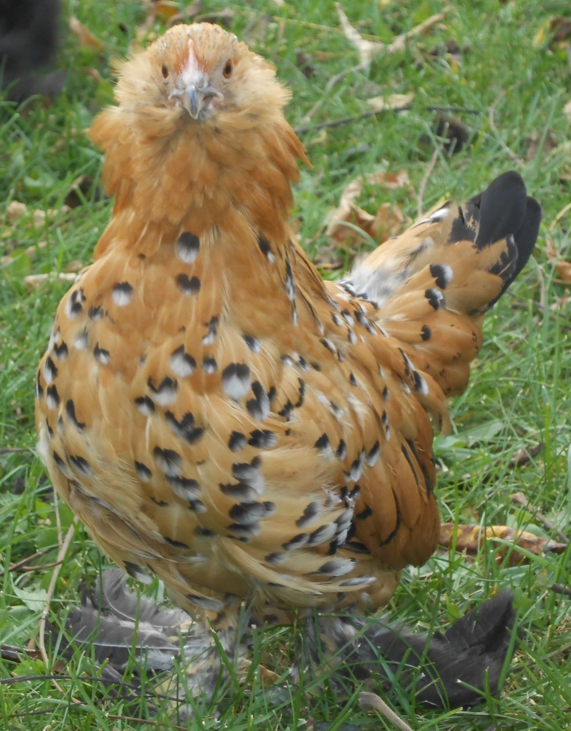 She has nice type, but she doesnt have the greatest beard, but what stands out the most is the lack of spangles on feathers, each feather should have 5 colors on it... and the tip of each brown feather should have a black end with a white diamond and each black tail feather should havae a white diamond as well.