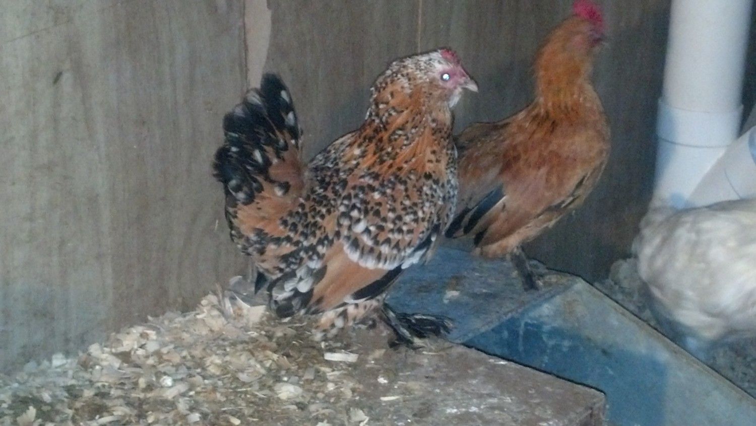 These are my two mille hens, one has a nice beard and the other is slightly lacking but she does have a beard. They are the only two hens out of all my chickens that are laying. They both have nice boots and nice flowers, good color. Least that what i think, i am not expert and only just got them and the Roo about 3 months ago. Don't mind the seabright in there upstaging the mille's lol