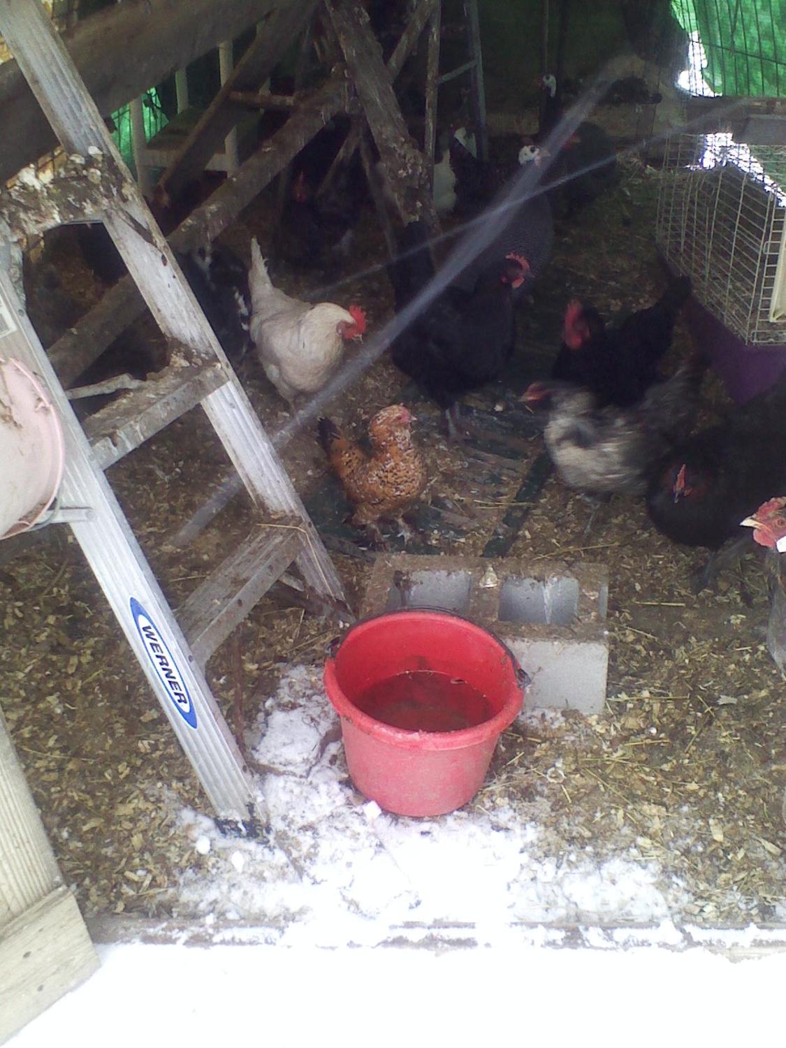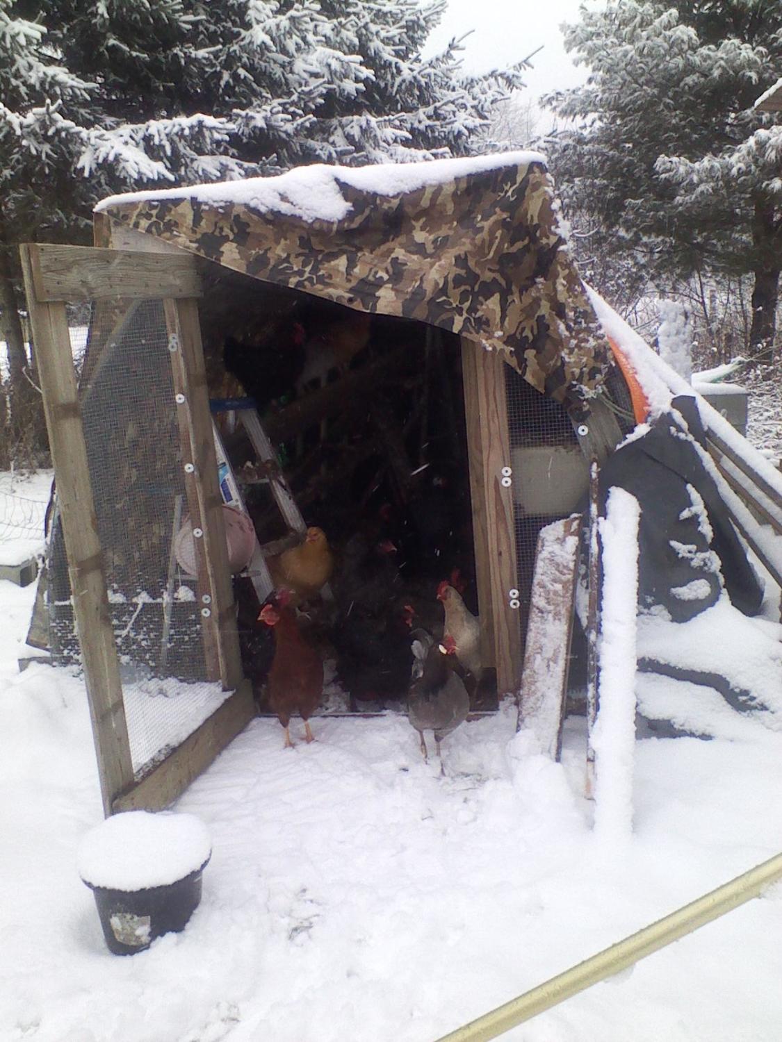 My D's come out even in the snow and scratch around - some of the larger hens (marans) stay in the coop and look out !  Not my D's - they are out there in the bushes and wondering about ....   :)