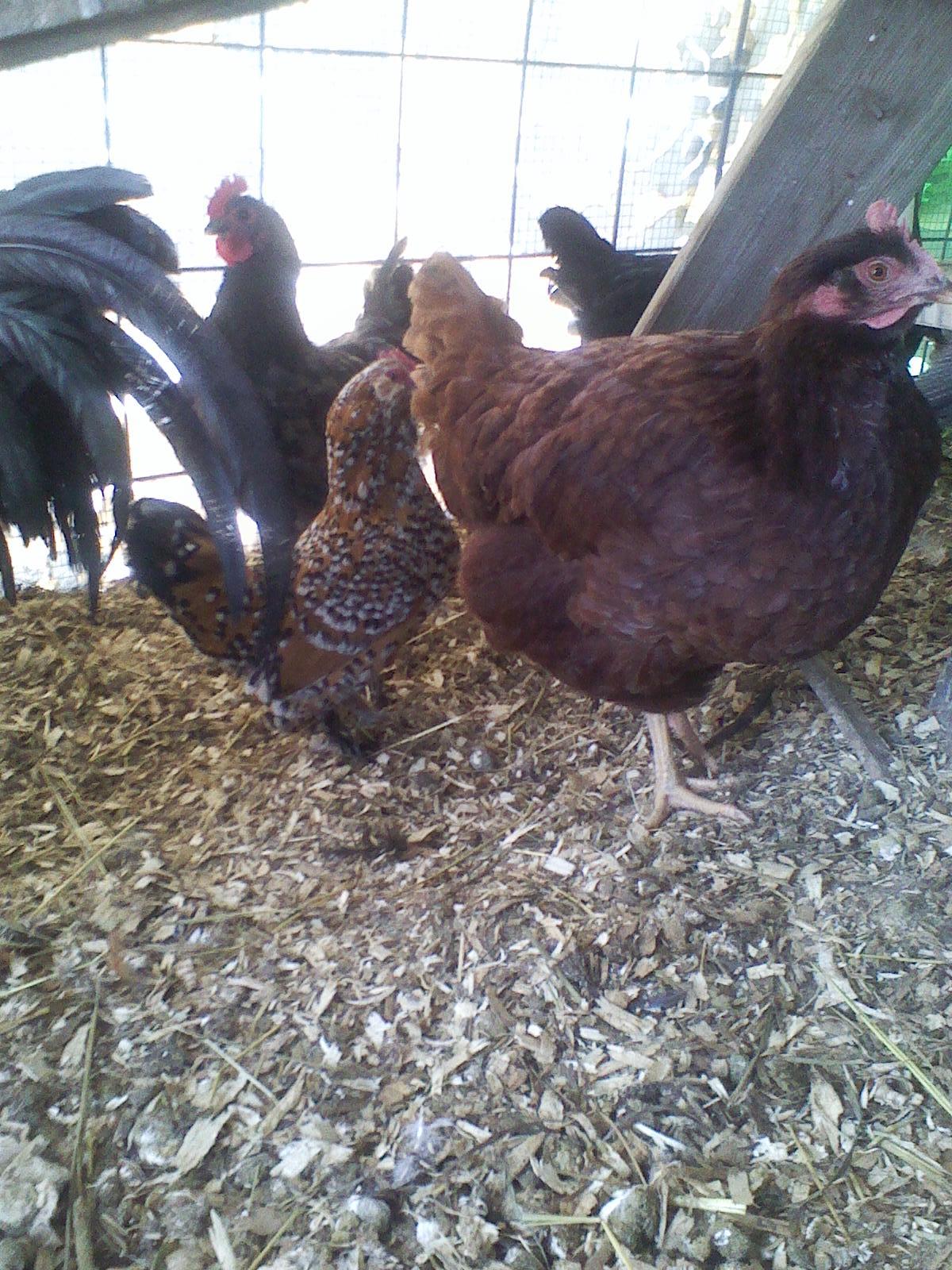 On the large fowl question.....my live with barred rock, barred buff and leghorn LF...and a 14lb french white muscovy drake...no issues so far for me other then normal chicken stuff and the duck eats chicken feather..They all roost together at night LF and bantams mixed together on the roosts. i dont imagine they are stressed since there are other bantams breeds in there as well but the MF are the only ones to have laid anything in atleast 2 months now.