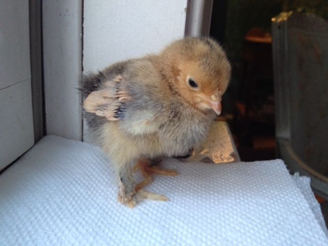 yes, looks like mille fleur pattern, just not a lot of black in their pattern. they look about a week old. they are small babies normally.I picked up what I believe to be 4 mille fleur d'uccles at TSC today, and just wanted to confirm that this is in fact what they are? I'm glad I did because the poor things were suffering from pasty butt terribly and it was so bad that at least 2 of them would have died from it within a few hours, and since there were dozens of chicks left in the bantam bin and almost no one buying chicks it didn't seem likely that they would have been taken care of in that time. They seem to be doing alright so far. They look exhausted in this photos because it wasn't long after we got home and set them up. It was nearly dark so I wanted to quickly take a photo of each while I could.
