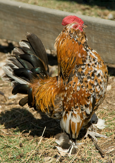 Thanks for the response. 5 of them look pretty much like #1 & #3 you've pictured here. The other Two I was questioning look like the hens however I separated one of them and it was crowing this morning. So I'm not sure about the second and I don't believe the two are the age relayed to me. I guess I'll separate the other one and see if it crows then I'll know for sure but I will go ahead and post pics when I get a chance. They are in horrible condition with scaly leg mites. Worse than anything I've even seen on the internet. Poor things! Very sad and frustrating. Only the one I separated barely has any on it. The others are so bad they can barely walk and one will probably loose a couple of toes because of it.MF Hens and Roos look very different in pattern...the coloring can vary as in Roos are most always the dark mahogany and hens the lighter buff color but not always as that is related to the quality of the D'uccles. That aside Roosters will have spangling in their saddle and hackle feathers and a green sheen to their tail feathers which will be long. They will have the Flower pattern on their chest and the lower part of their wings...the rest of them looks like mahogany and spangles when they are standing there relaxed because they are covered by saddle and hackle feathers. It is rather hard to mix up the MF roos and hens at 10 months old so if you think you have some hens in there even though the guy said all roos, you are likely right. Here are some internet sourced pics. The first 4 pics are all Roos the last 4 are all hens (some are younger, some are older, some are better quality then others)![]()