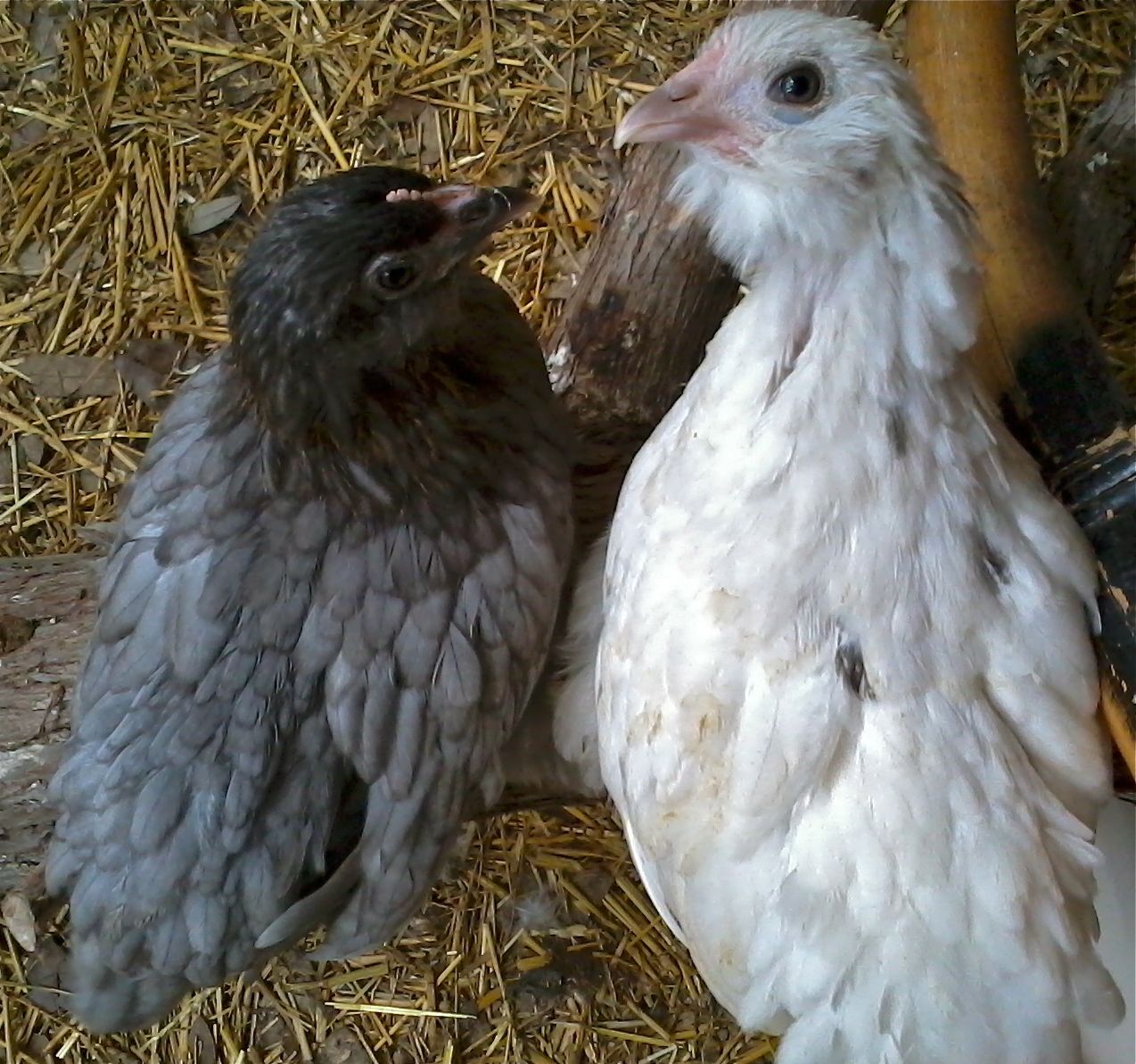 My question is how big are the d'uccles related to say australorps, dominques and wyandottes - which are what I have brooding downstairs? Will they get along and if I end up with a d'uccle roo? Will he try to mate or be successful mating with my current ladies? My ladies (6 of them total) are about 6 weeks old (hatch date March 30th) and the d'uccles I am eying were hatched March 18th.