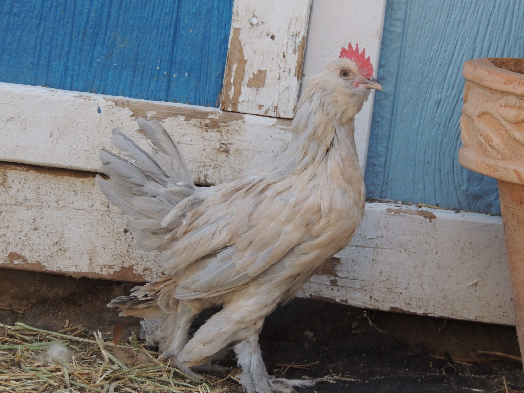 I just wanted to show off my baby Wombles, my very first Belgian d'Uccle and not the last as I now have 5 of them. I brought this little girl from a privet seller who new nothing about chickens and had cages full of them! I had never seen anything like these chickens before they had such character about them, but Wombles was the odd one out and so being me I pick her and took her home. I remember she looked nothing like she does in the photo now, almost no white and very little black and her feathers, all destroyed and covered in who knows what she was such a mess! But I look at her now and the way she comes up to me! I don't think I will ever quite get over the personality of this breed so much spunk and character for such a little chicken!