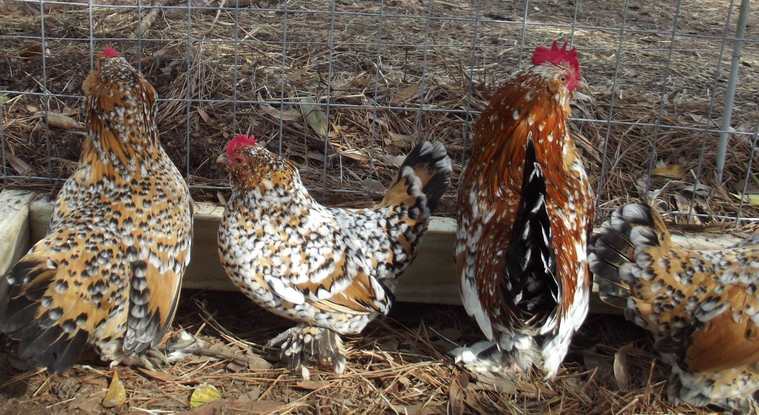 Mstricer, if Mr Boots is being mean, you can give him 'the boot'My current mille roos that are breeding are the absolute sweetest and let me pick them up at will and pet them every day. I have another in 'protective custody' and another in 'rooster jail' as the 'protective custody' one is pretty, but got beat up by the sweetheart and doesn't have much black on his chest. My 'rooster jail' fellow has a darker color and very fine patterning (small but crisp), so even if he doesn't have the best foot feathering and personality, I plan to hatch a bunch of chicks from him this spring.