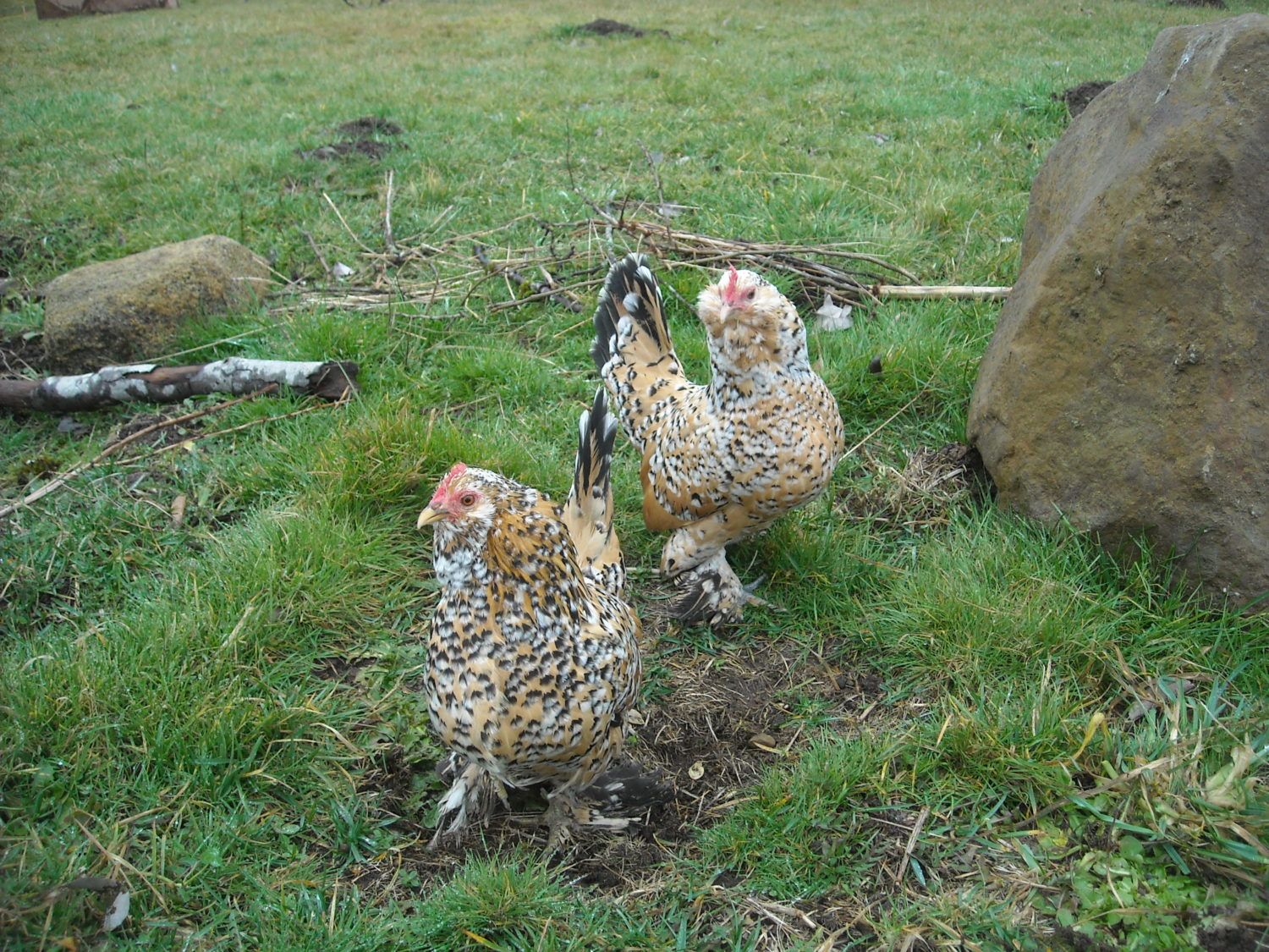 My dad rescued 3 chicks from some people who bought them as Easter chicks for there 2 and 3 year old kids. When they heard about them there were 5, 1 was squeezed to death and the other I dont know what happend. My dad didnt want them so I took them. Brought them home sunday, 2 oegb and 1 d'uccle. My step mom also said the people were only feeding them oats no chicken feed at all. Im slowly taming them down but Ill share a pic of them. The D'uccle is a the mille fleur color. Are milles supossed to have white legs? and should they have feathers on the middle toes? Ill post more pics as she grows because ive been wanting more d'uccle(and oegb) so im excited to see how she turns out. I have a 3 yr old mille hen who would like another buddy so once this little one grows up she'll go in with her and ill prob get a roo also.