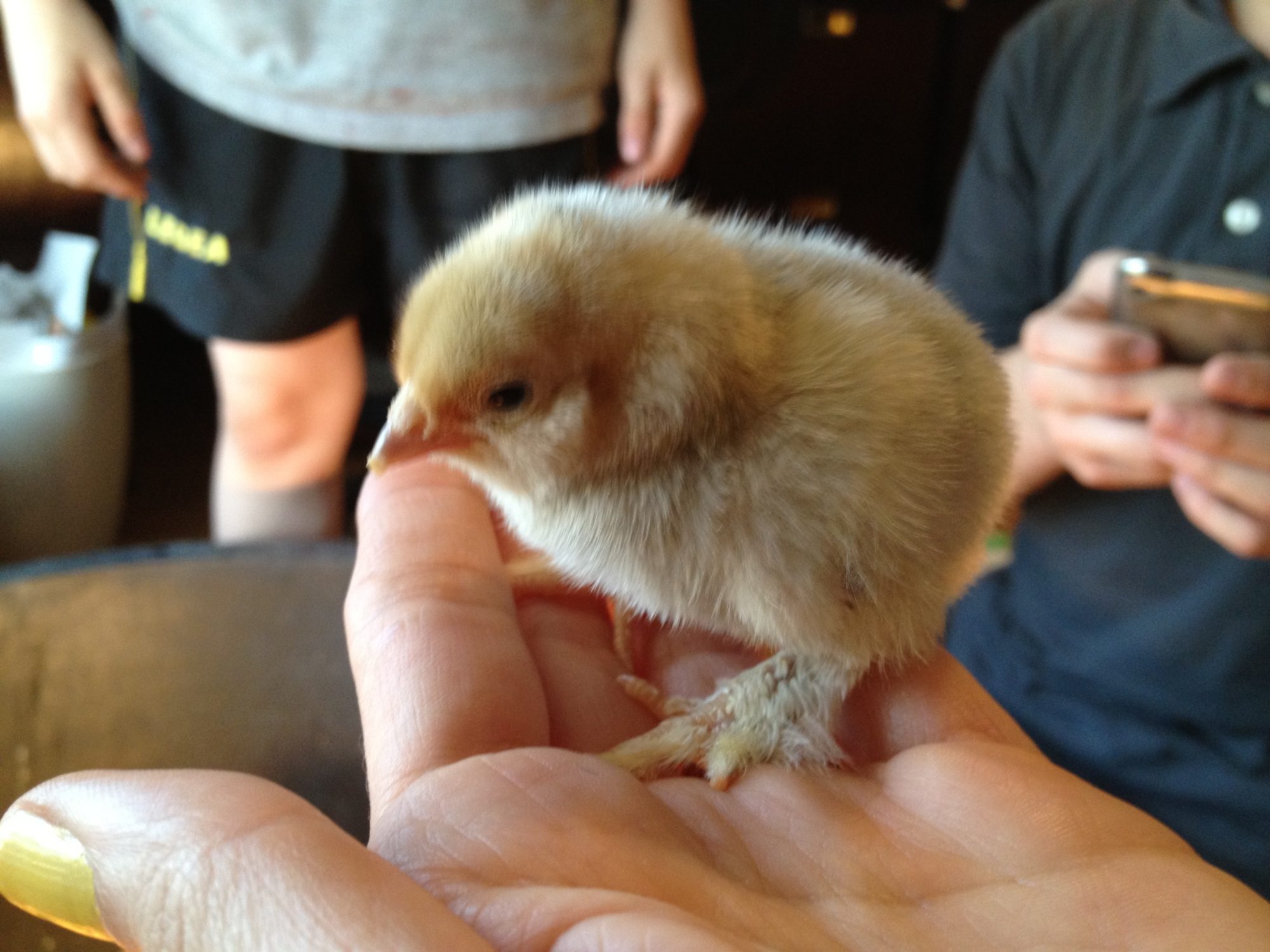I recently discovered my bantam I picked out of the assorted bin is a d'uccle. She is 5 weeks old now and originally lived with her "sisters" until I couldn't resist and brought home 2 more d'uccle chicks and an ISA and Black Australorp. Since Waffles is soooo much smaller than her original flock of 5 weeks I wondered what she'd do with the newborns. Not only did she love them right away, she thinks she is their mama! She was 4 weeks when I put her in with the one day olds. She tucks them under her wings, flaps at the older chicks when they get near "her babies" and makes calling noises when the babies get too far away. Now, I've never had chickens before but isn't that a little crazy that she's so young and so instinctively "mama-ish"? She's so super sweet too. Loves to sleep in your sweatshirt or a little blanket. haha I still put her back with the big girls and I let them all free-range together under supervision. So far the older girls couldn't care less about the babies so I think they'll all be fine when I integrate everyone when it's time to put everyone outside in the coop..