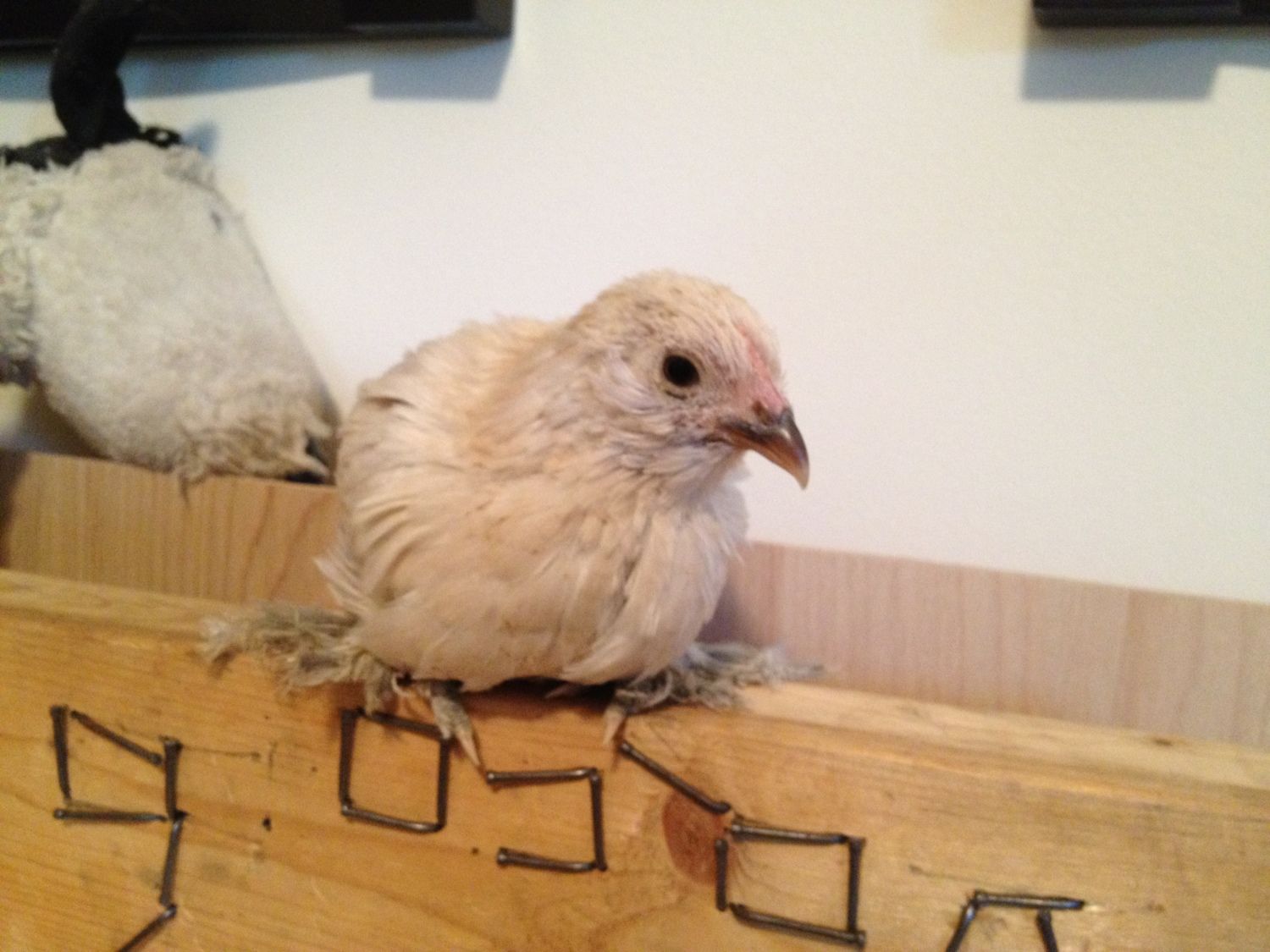 Really, you think? I'm sticking with pullet. From all the pics I've seen of D'uccles her age she is one sorry cockerel if that's the case. lol Here are some pics of her today at 5 1/2 weeks old.d'Uccles are usually very good with new chicks. I almost always leave the smallest chick from a batch in the 'newborn' brooder when a new batch hatches, to teach the babies how to find food & water.