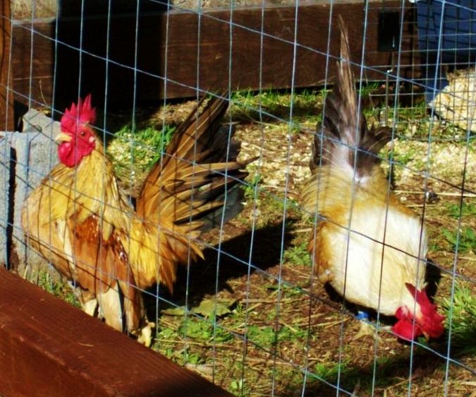 these are my 10 yo self blue D'uccle pair please let me know what you think of them! we are new to the breed and would like to know if they are of good type and what not.... also they are very flighty! they roost up in the tree above DDs window! Gomez the roo also had the funniest crow when he was 2mo! is that normal? it has gotten some bass since then but its still a bit funny to wake to that stil high pitched crow!