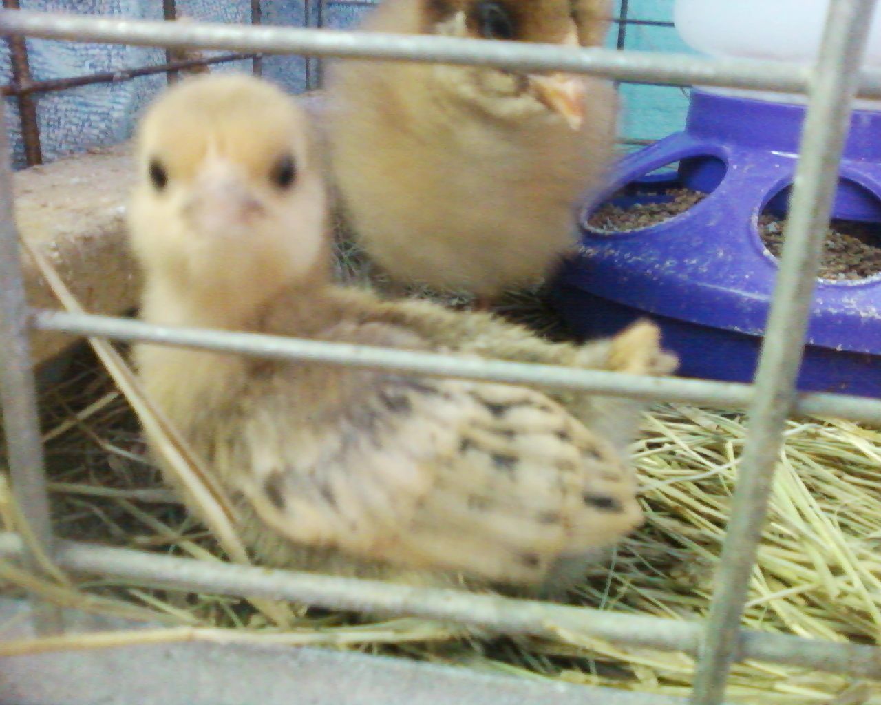 So darling! I would love to have splash D'uccles..My newest set of d'uccle chicks, at three weeks, are all flying out of the bin they are in. I've got four large, clear plastic bins kept in a nice warm bathroom and every time I go in there, they are all over the place. So much for keeping them separatedThey are so cute!