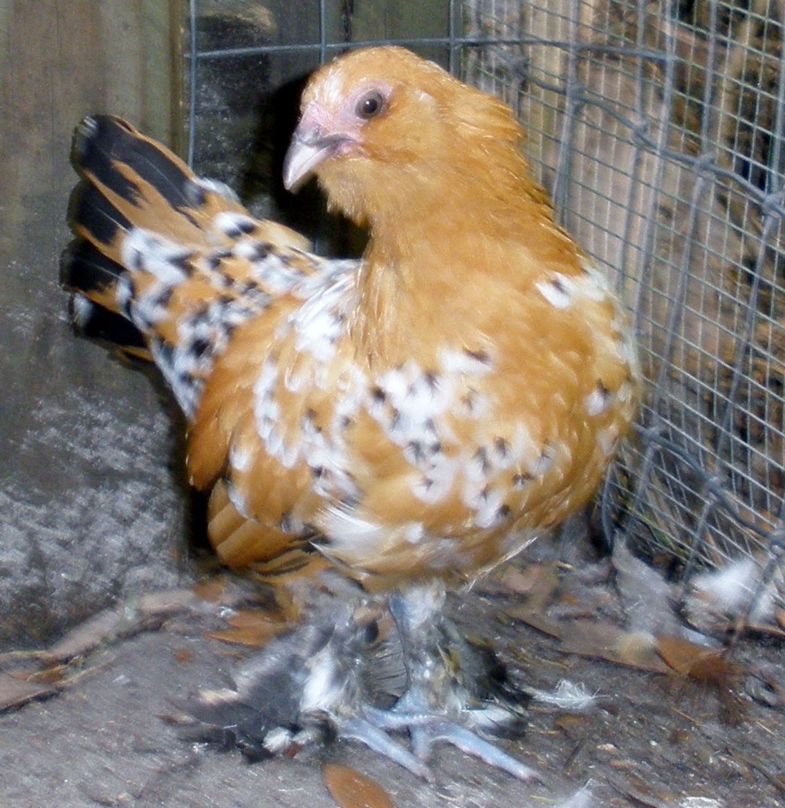 I have a new project, one that wasn't planned for. My black splash silkie/d'uccle has created several d'uccle splashes, so I might develop that line. The latest chick was born white with a small black spot on the top of his head, and two spots over his hips. The other splash d'uccles are a little over a month old, but none were born with these cute dots.