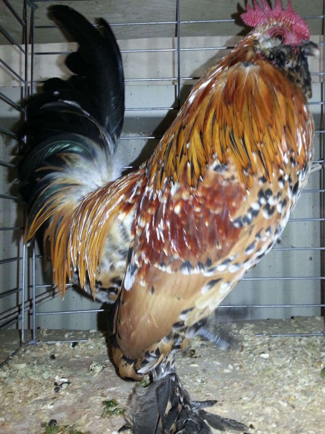 This one placed first. He has a fuller, thicker neck snd his coloring is better (more pronounced spangles, more even red tone).