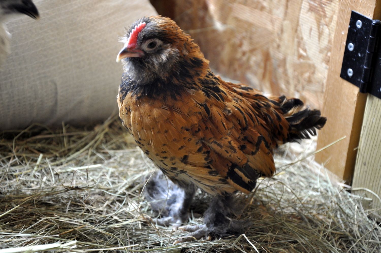Whoa my goodness! That thing looks like a little Hobbit!It's my first time with d'Uccle chicks. I hatched these out 7 weeks ago. I'm looking at the beard on this one, and it looks funny to me...the other chicks it looks like they've got tiny feathers, but this one looks like fuzz. Is it normal for a 7 week old d'Uccle? I'm thinking this one is a rooster given the red comb...but sometimes it reminds me of a hen!