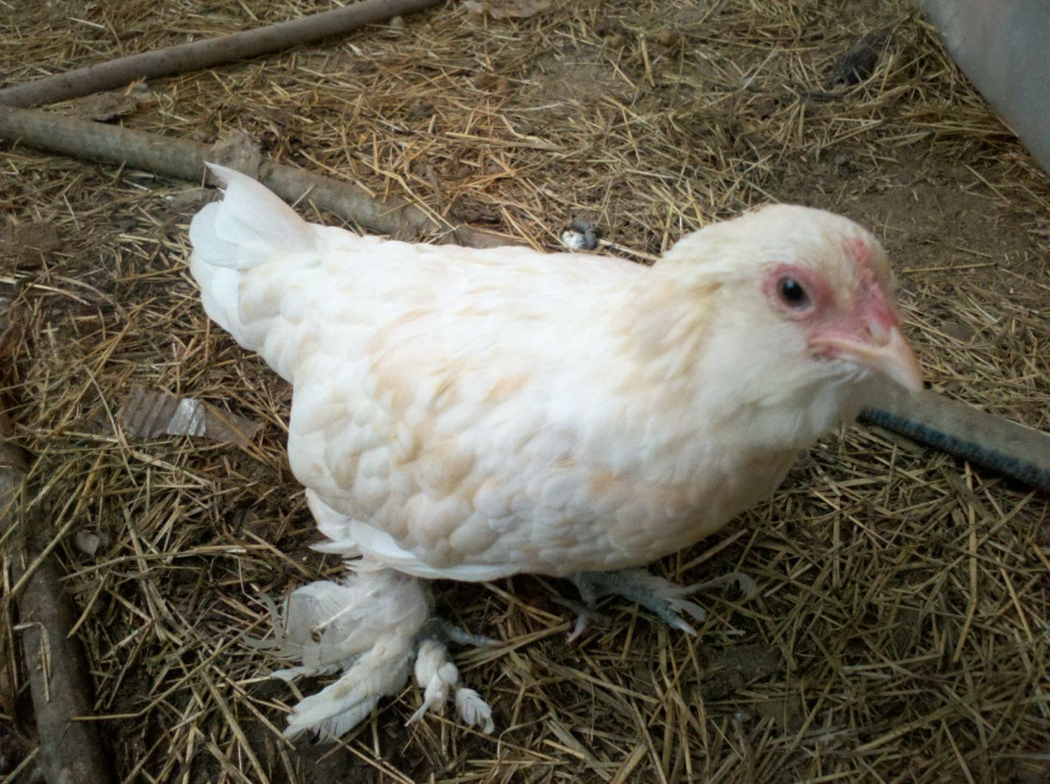 our Golden Neck pullet from GAgirly! I would like to know how she looks to a breeder... I am thinking a dark roo will go nicely with her... am I correct in this?