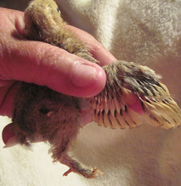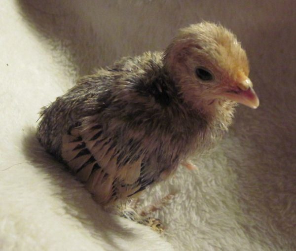 Anyway, the porcelain hen was in a container with mille fluer chickens and the porcelain rooster. So it's most likely these chicks are crossed since I'm pretty sure they are not pure porcelains. They do not look like I remember my Mille chicks looking, they look paler to me from my memory. Is it possible these are pure D'uccle? They never fluffed up, seem to have a thinner bit of baby down than most chicks. Also chick 2, possible early guess as cockerel and 1 as hen?