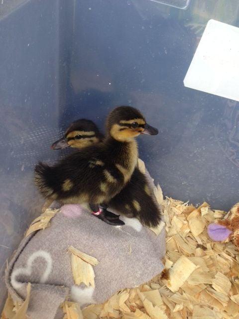 The baby duckies went out of town with us, and have grown a lot just in the last 4 days. Its nuts! The one with the little pink anklet is Dora...the name came from her first hour of being at our house. She decided to get up on her stuffed animal, jump out of the box, explore the room, go under the bed, and wedge herself between the wall and a box. So that adventurous one is named Dora. The other one is currently being called "No Name", but she loves to cuddle and follow Dora... she is very quiet too!
