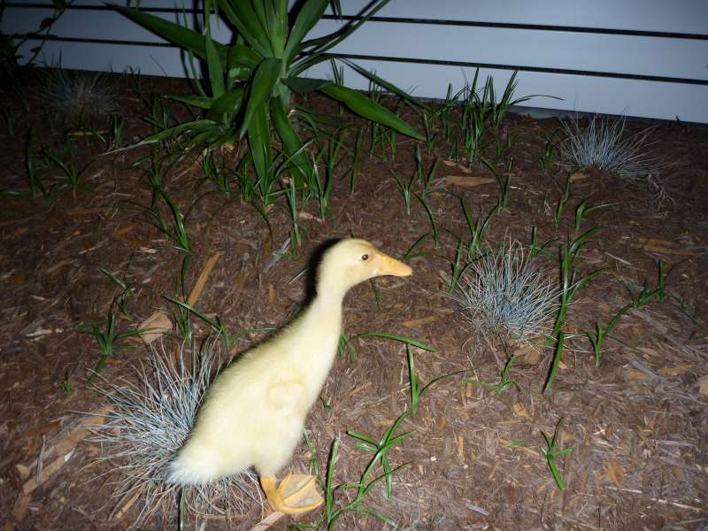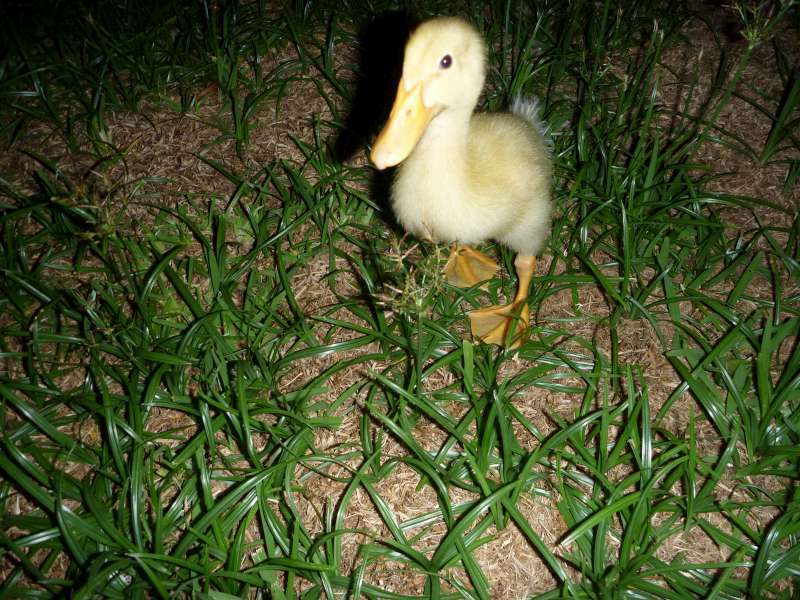 The duckling is also growing so fast. I gave her a stuffed toy and she was freaked out at first but now she snuggles up against the toy. I made her a water bowl with a lid and a small opening wide enough for her bile to fit in.