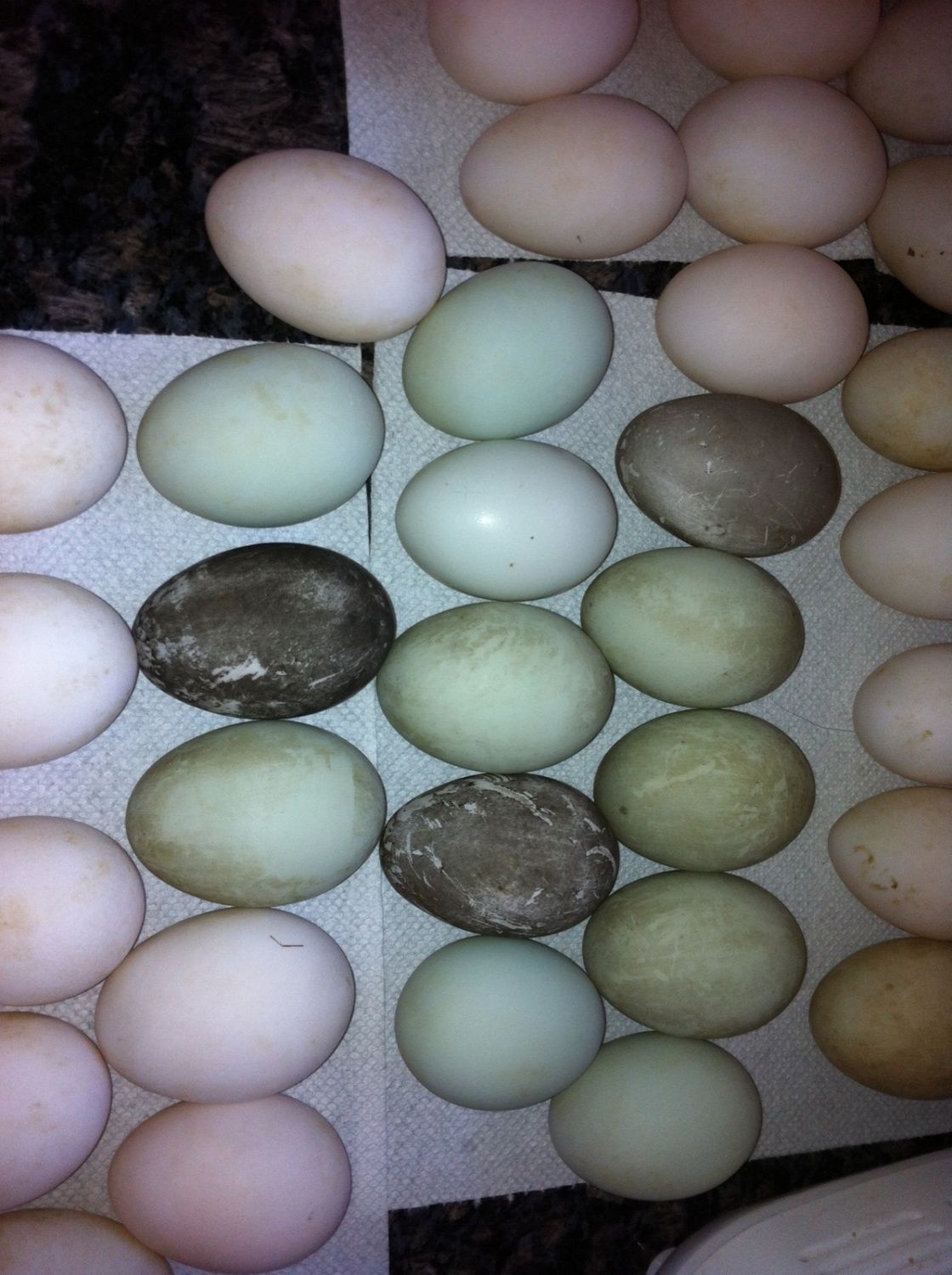 Egg colour: White, tinted, blue, green, spotted